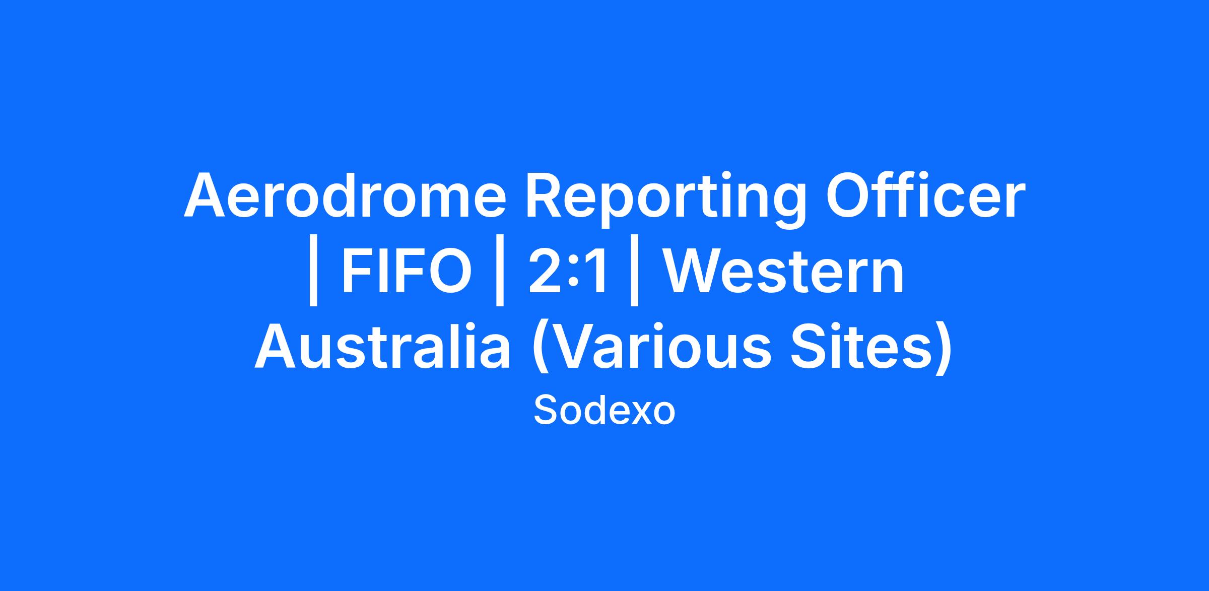 Sodexo is currently seeking an Airport Reporting Officer to join our team. The Airport Reporting Officer role is fly in, fly out of Perth, WA Working 2 weeks on and one week off.