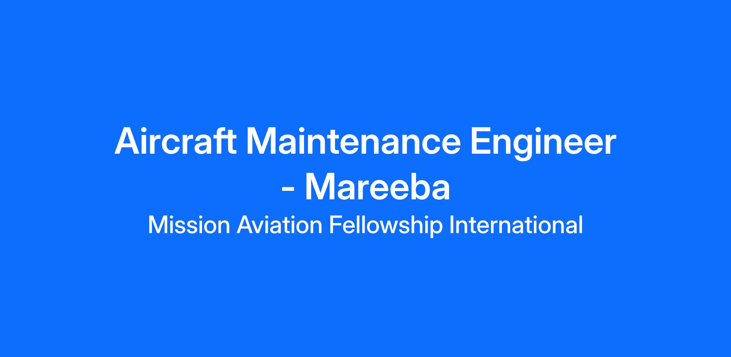 We have a great opportunity for an Aircraft Engineer to join our Mareeba Maintenance Teams to support operational MAF Programmes by maintaining a range of aircraft types within the MAF Fleet.