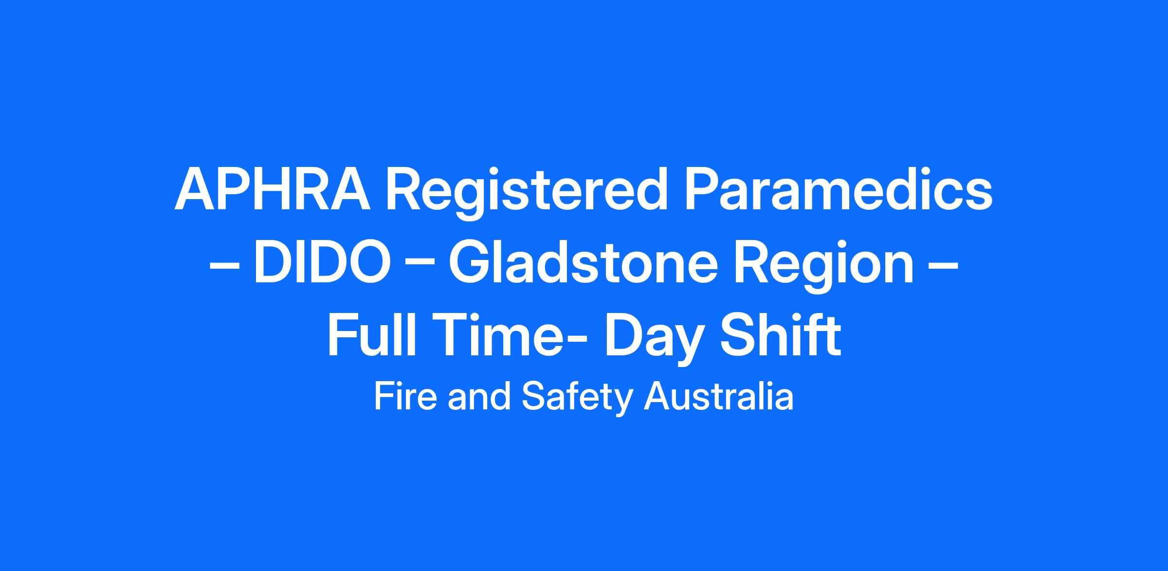 APHRA Registered Paramedics – DIDO – Gladstone and Surrounding Regions