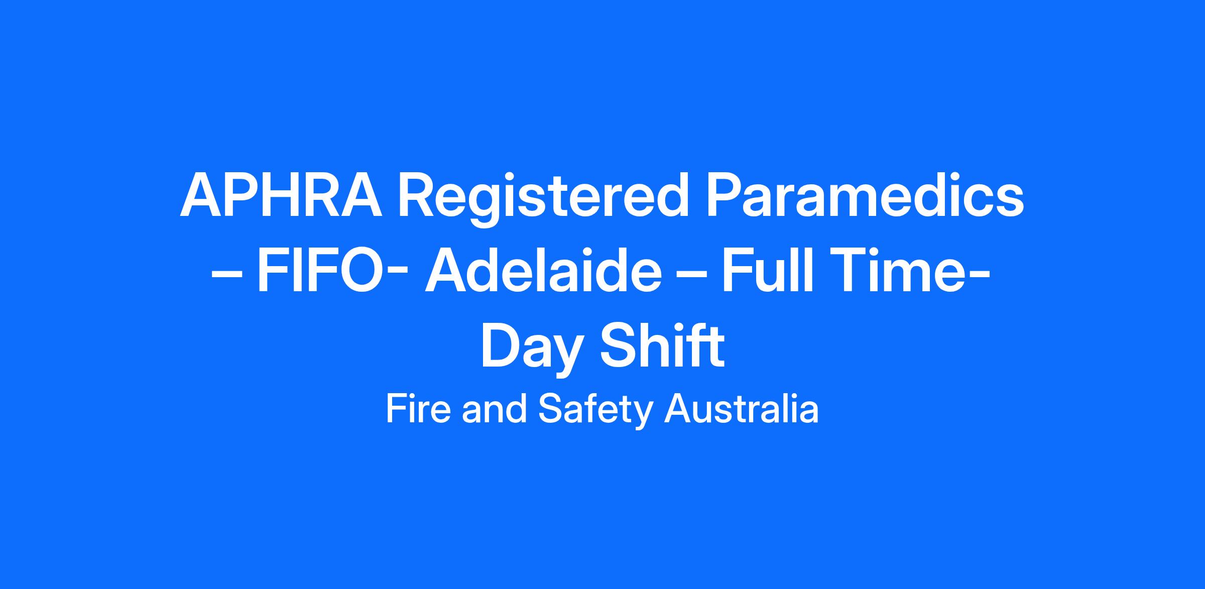 APHRA Registered Paramedics – FIFO- Adelaide – Full Time- Day Shift Only (No night Shift) on-call 24/7 for emergencies only.