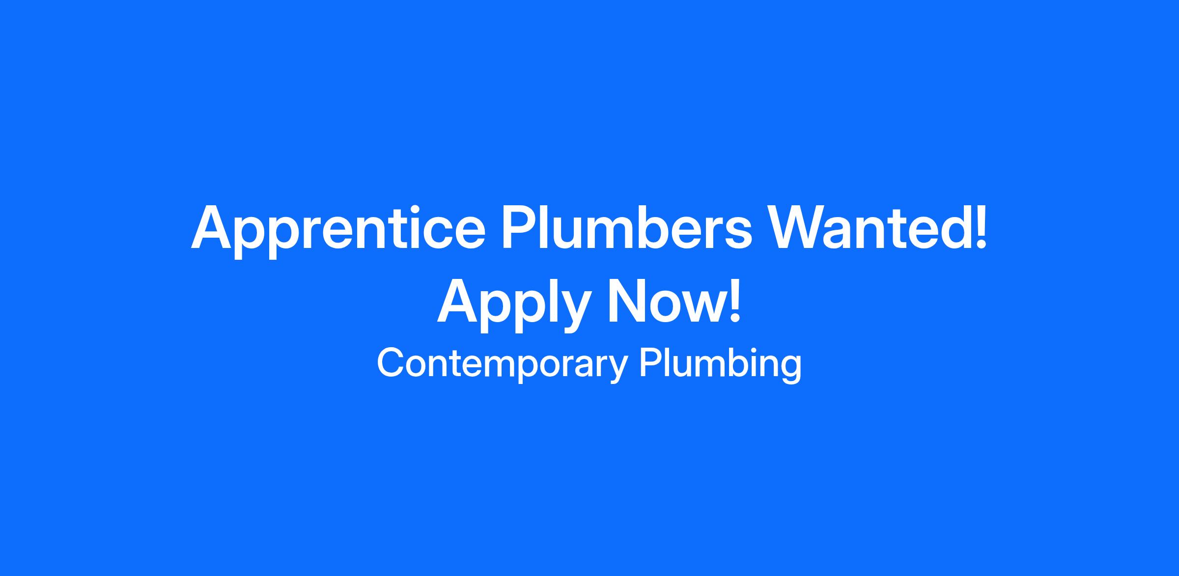 Are you looking to start an apprenticeship? Are you currently an apprentice plumber looking for a challenging role and a fresh start with a growing plumbing Company?