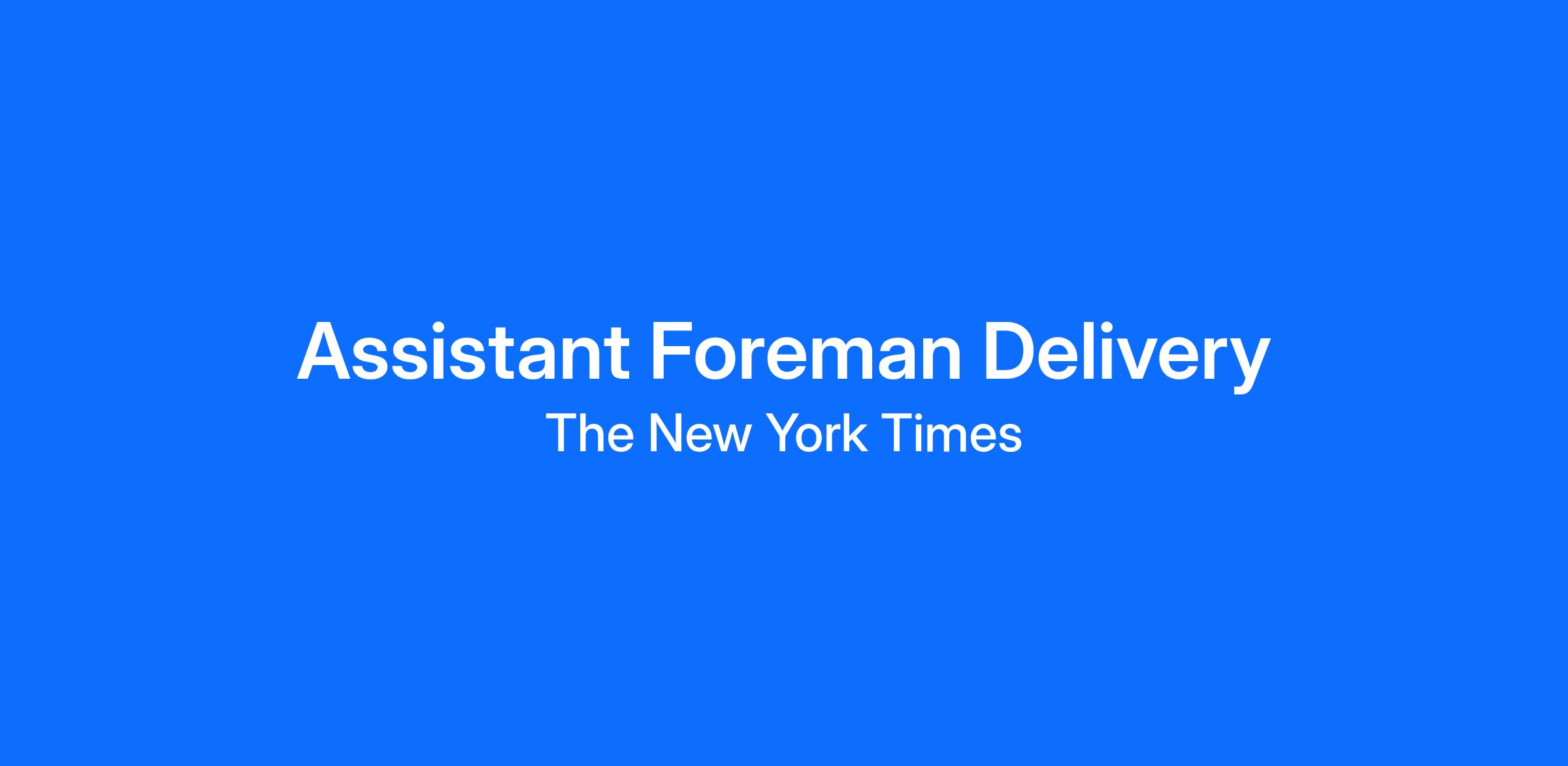 The Assistant Foreman Delivery will manage the staff of Delivery Journeymen on a shift basis. You will ensure accurate dispatch of products to the distribution, retail wholesaler, and home delivery operations we service. You should recognize operational issues and be able to institute corrective measures where and when needed, ability to coach and motivate personnel, administer discipline, make recommendations concerning hiring and dismissal, and perform some administrative responsibilities such as payroll, computerized spreadsheets (can maintain complex spreadsheets), and other reporting.