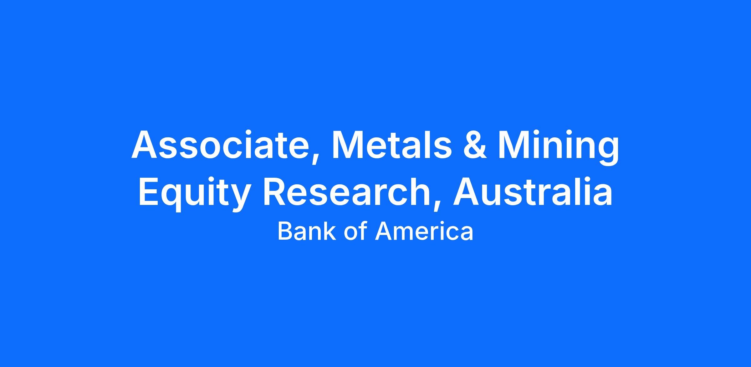 An opportunity exists for a highly talented professional to become a member of our Australian Natural Resources Equity Research team with lead coverage in Precious Metals and other Metals & Mining stocks.