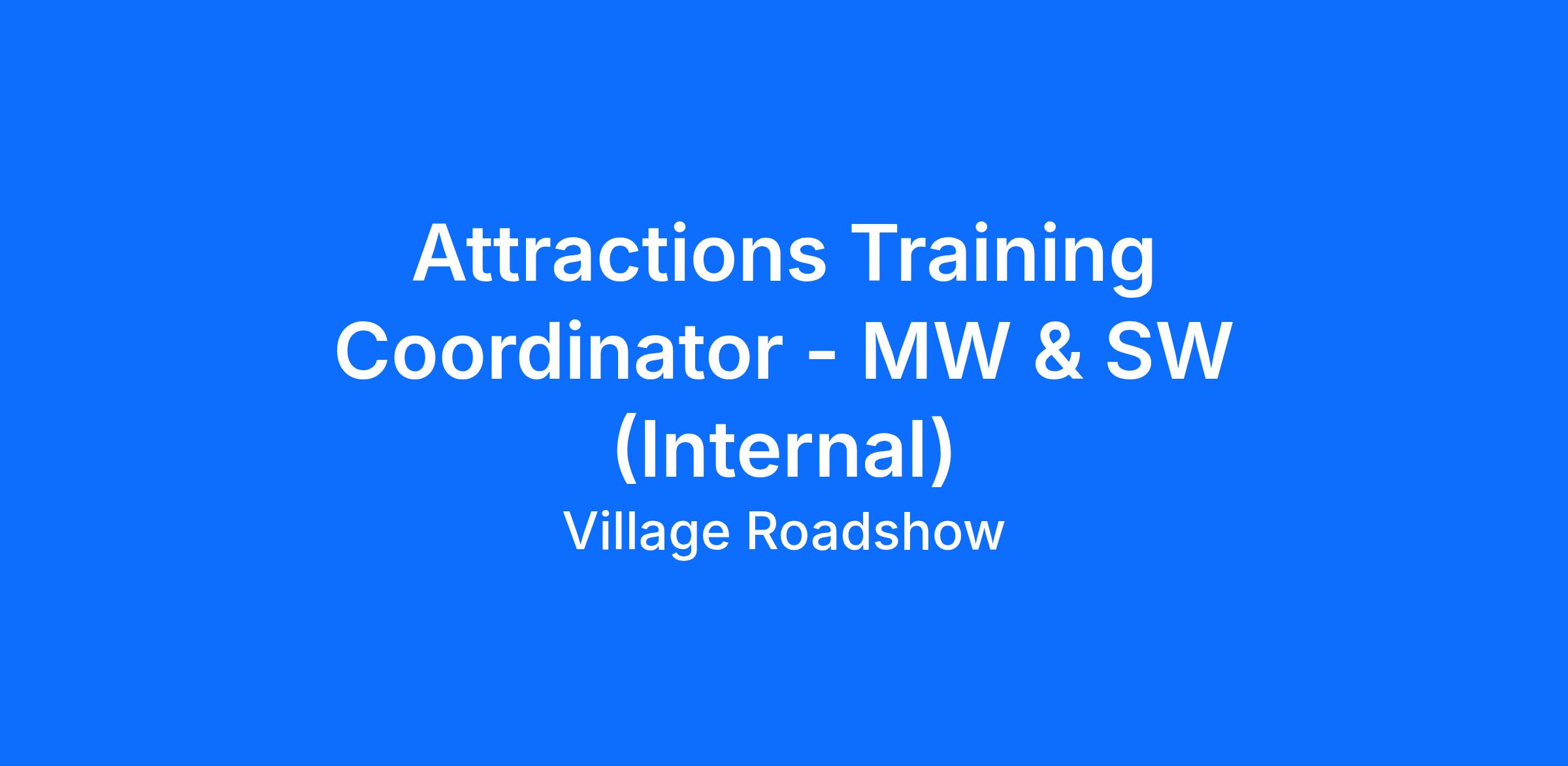 The Attractions Training Coordinator will coordinate, oversee and monitor the implementation of all Attractions training and compliance documentation in line with Safety Case and the VRTP Training and Assessment Strategy across Movie World and Sea World.