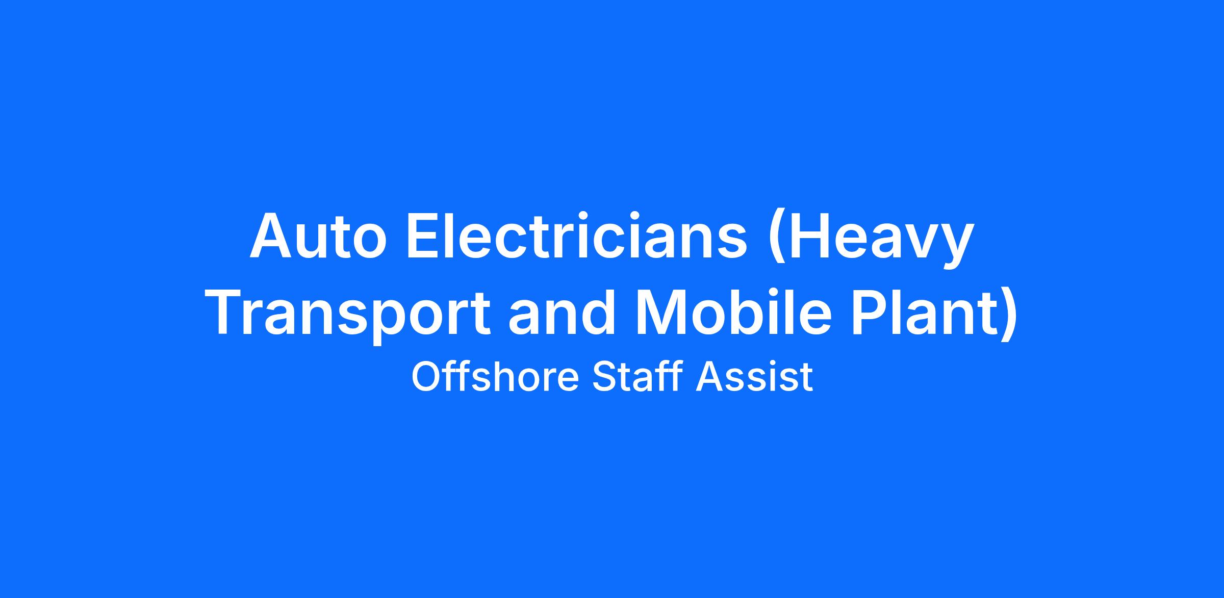 - A minimum of 5 years’ relevant experience working as an Auto Electrician, with a strong emphasis on PLANT or heavy machinery.