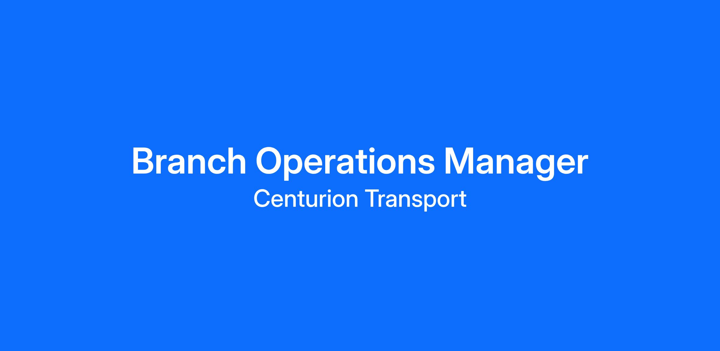 Position Available: Branch Operations Manager