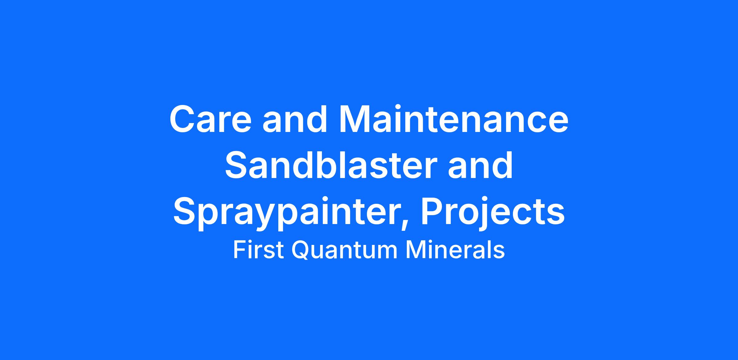 The Care and Maintenance Sandblaster and Spraypainter will participate in the day to day operation of the Process Plant Maintenance team, including caring for infrastructure and identification of proactive care and maintenance requirements.