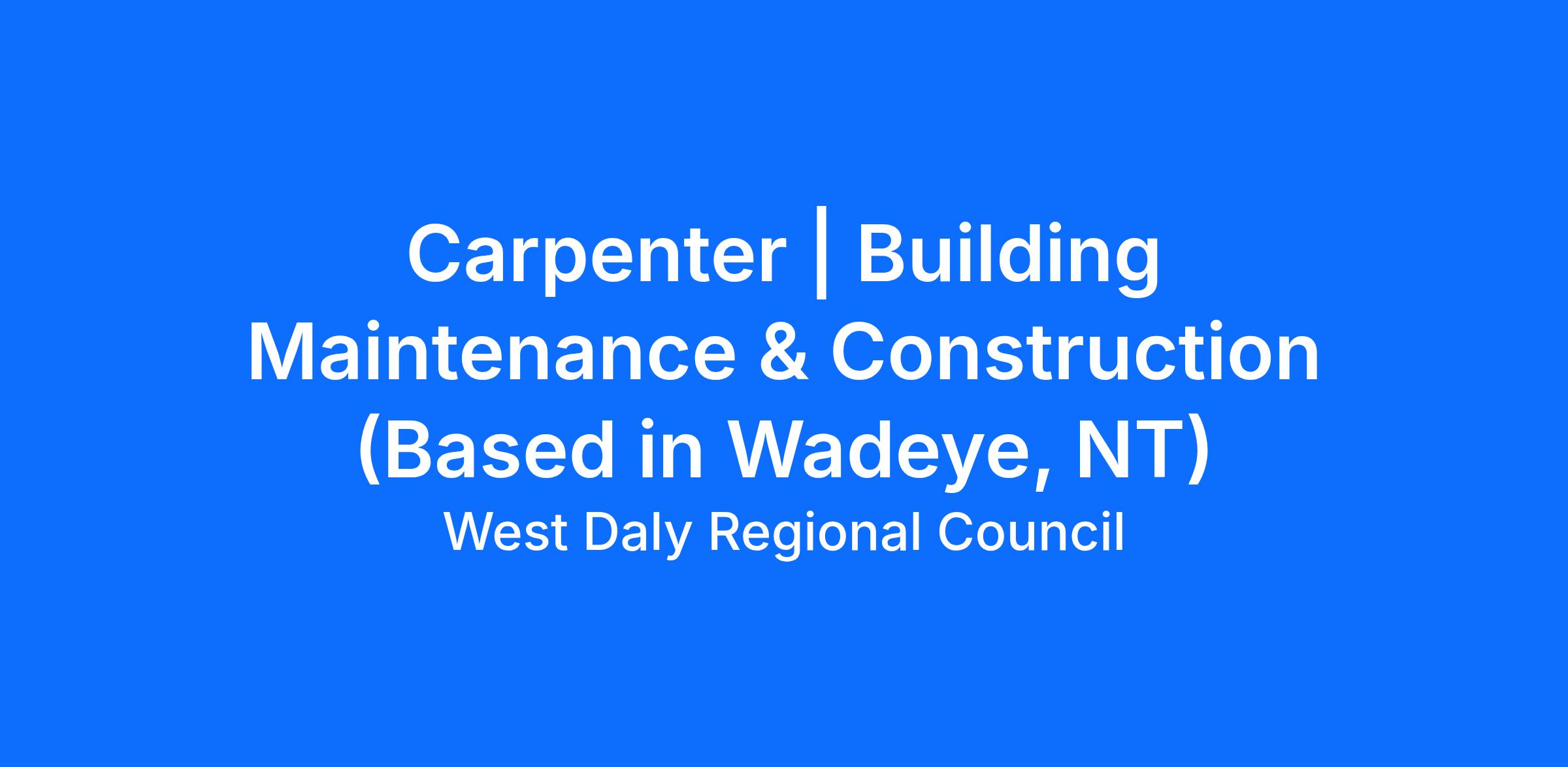 Carpenter | Building Maintenance & Construction (Based in Wadeye, NT)