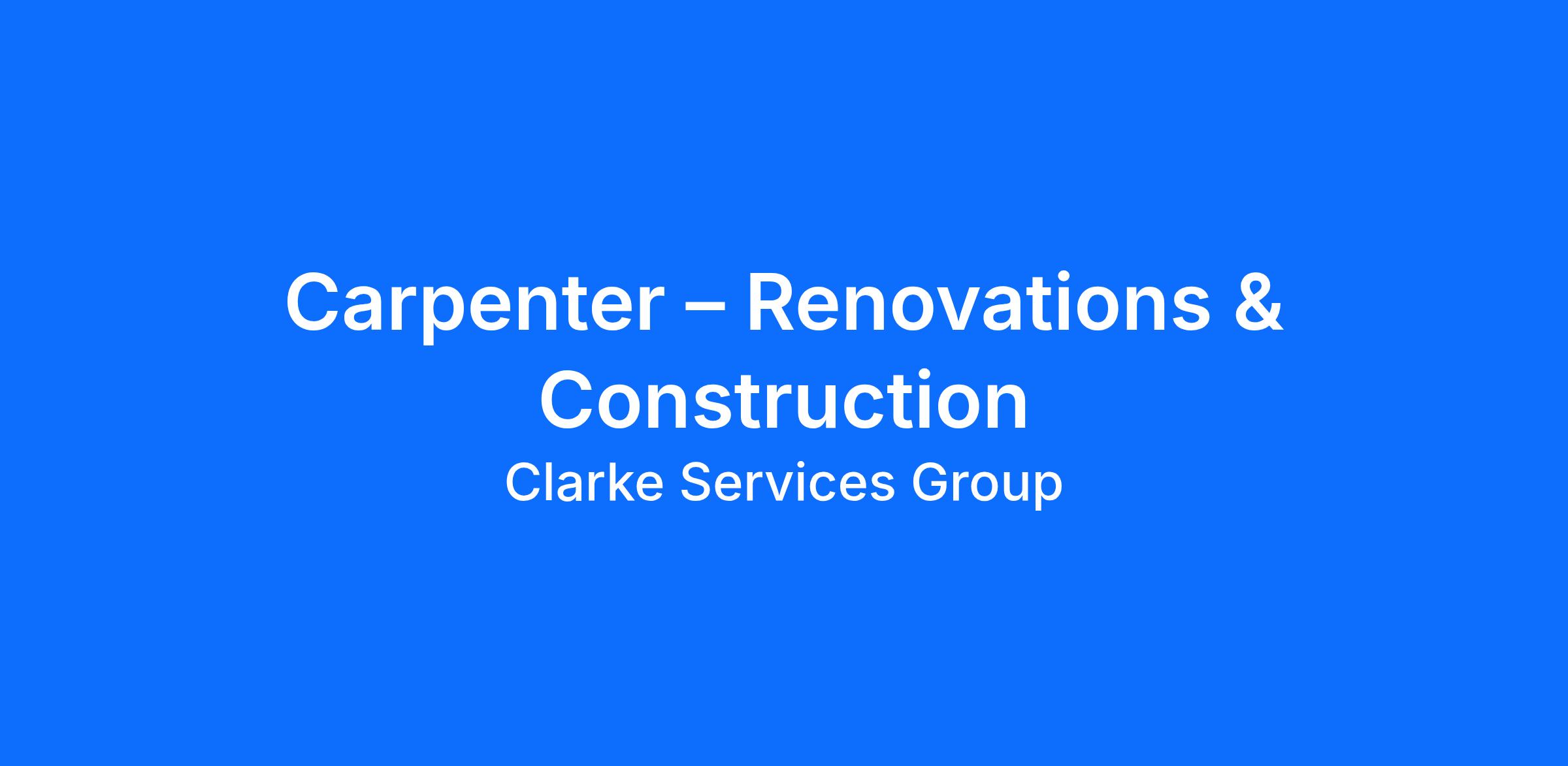 Clarke Services Group are a fully licensed Open Builder who is seeking Carpenters with experience in commercial, residential building repairs and refurbishments.