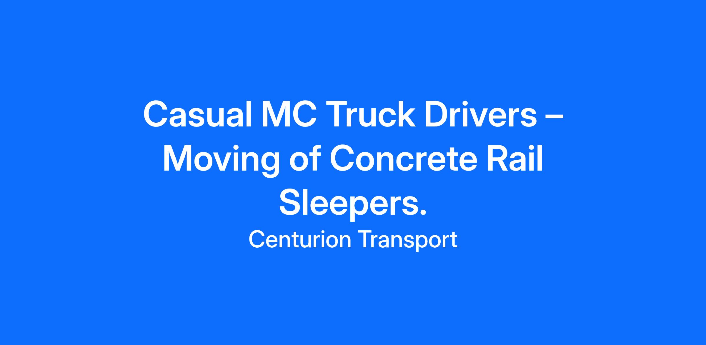 Centurion is requiring several MC Truck Driver on a casual basis. This is a Perth Metro Role Only where you will be required to move concrete rail sleepers.