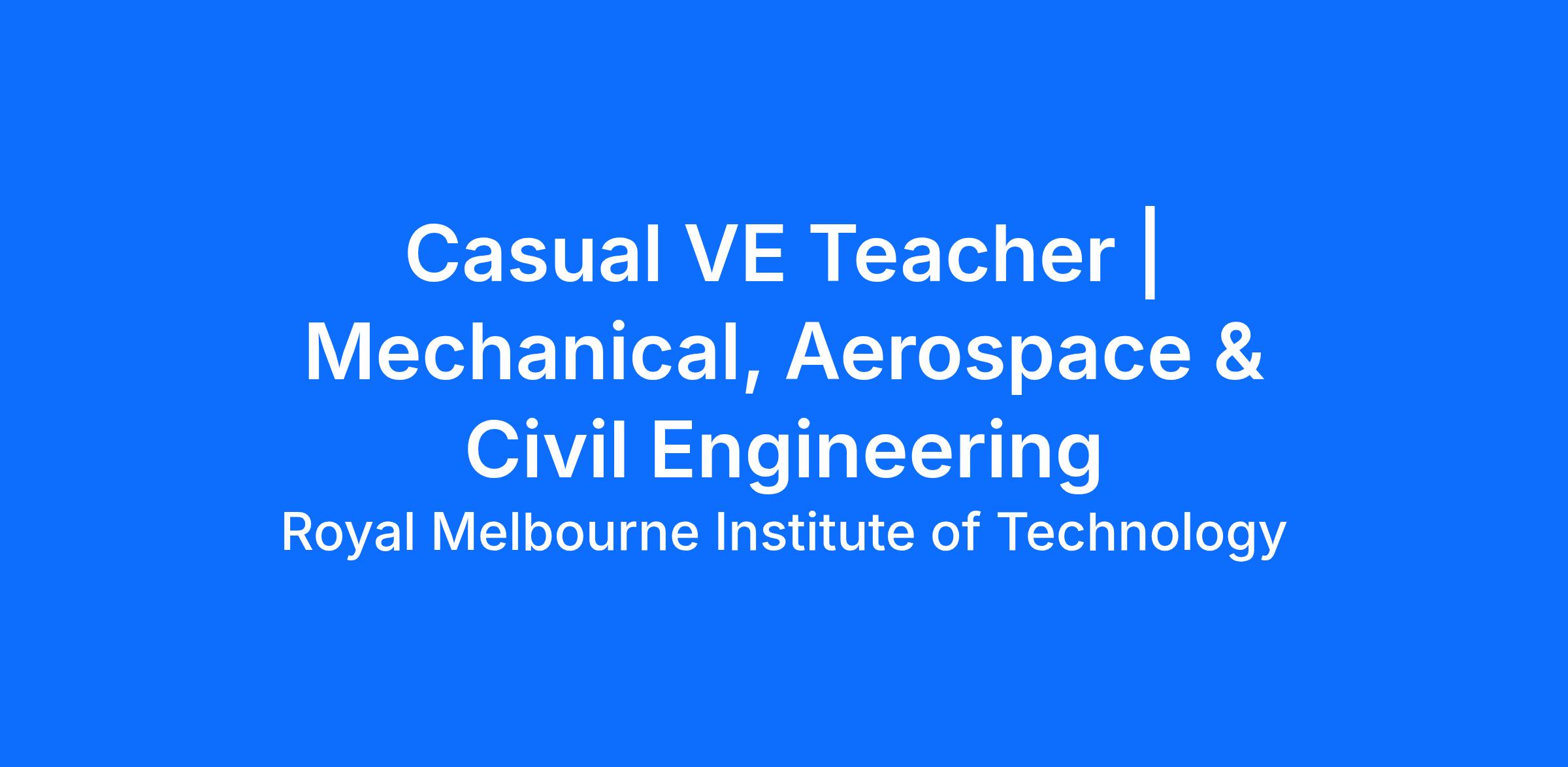 As a Casual Teacher within RMIT’s College of Vocational Education, you will be mainly responsible for the delivery of course material, assessing students and the supervision of students enrolled in selected courses within the program.