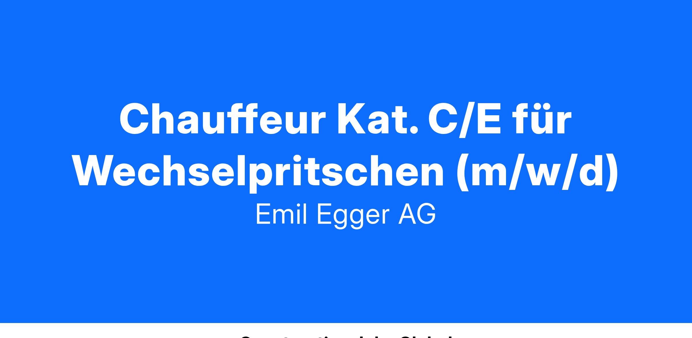 Als Chauffeur Kat. C/E für Wechselpritschen bei Emil Egger AG bist du ein wichtiger Bestandteil unseres Teams im Bereich Schwertransporte. Sie übernehmen die Verantwortung für den sicheren und effizienten Transport von Gütern und tragen maßgeblich zur Zufriedenheit unserer Kunden bei. Deine Hauptaufgaben umfassen: