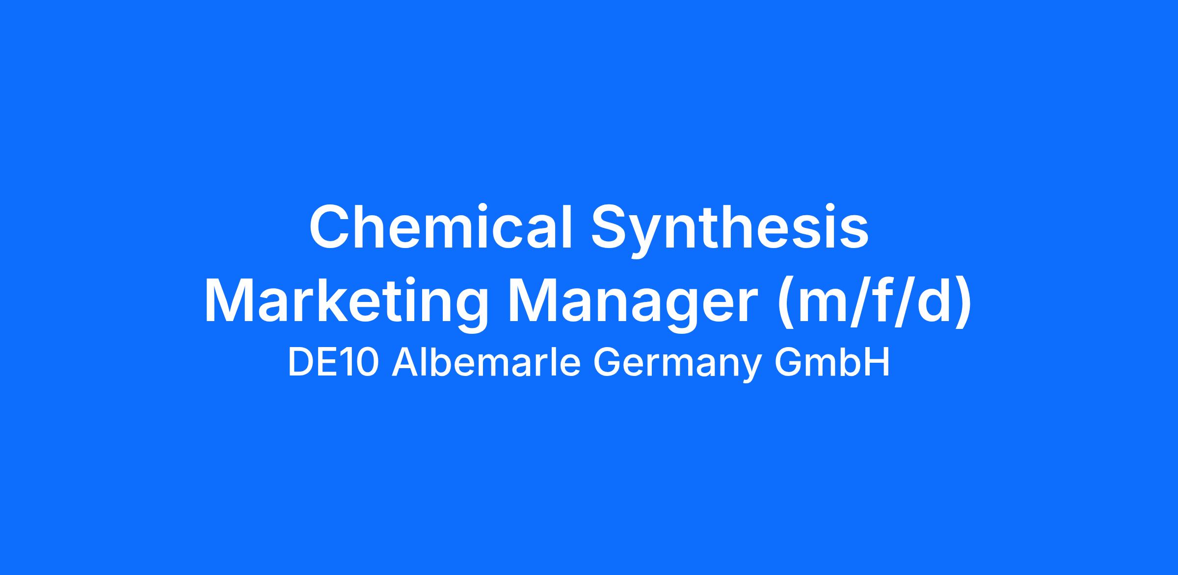 Chemical Synthesis Marketing Manager (m/f/d)
