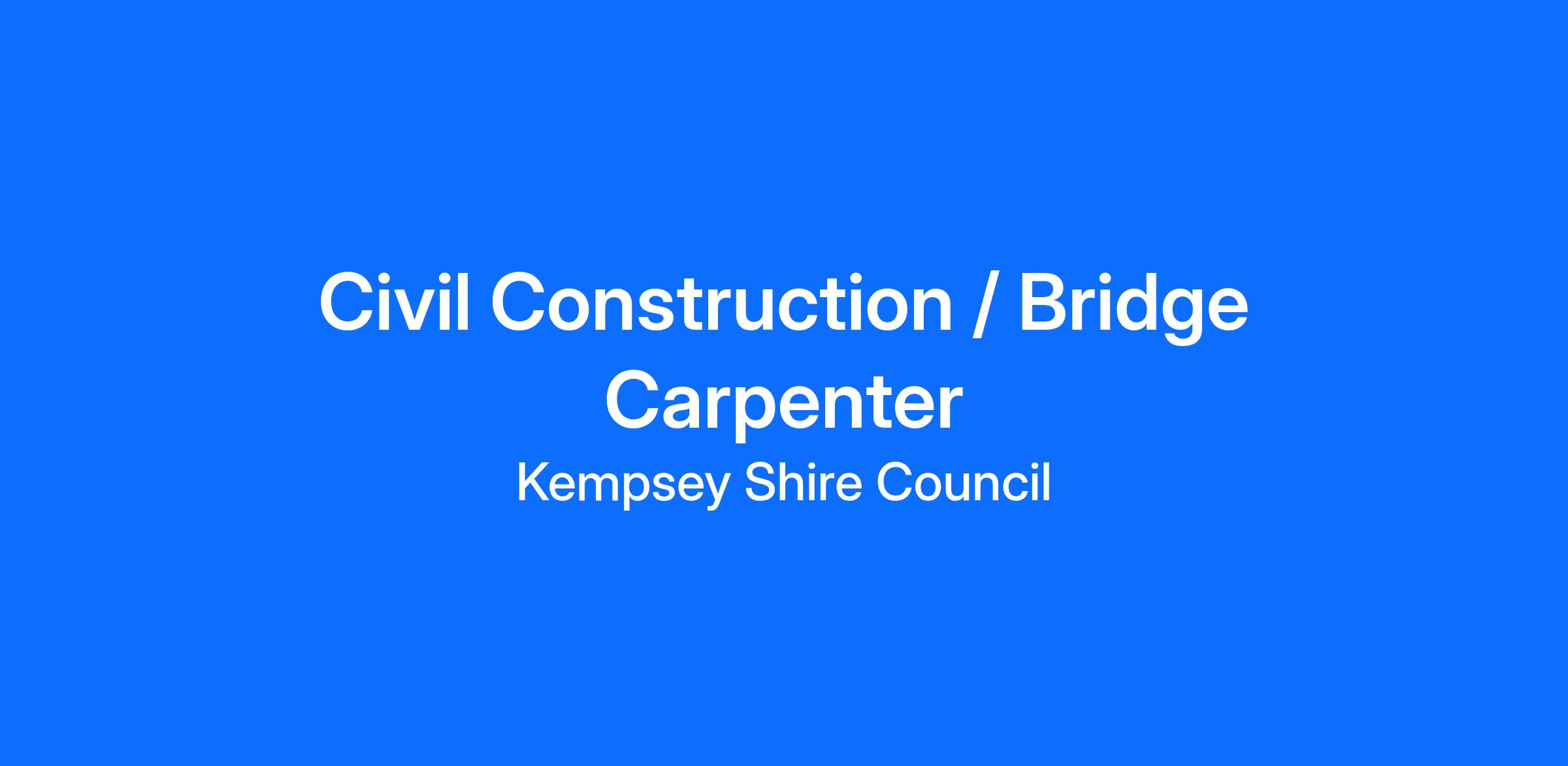 An exciting opportunity is available within Council’s Infrastructure Delivery Team for a skilled and motivated Civil Construction / Bridge Carpenter.