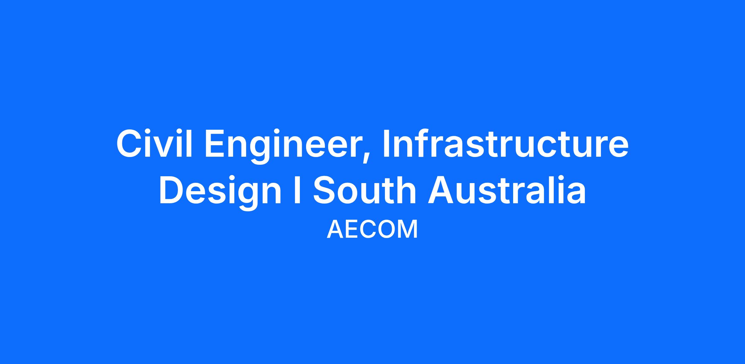 You will have support of technical and client subject matter experts both in the local Adelaide office, as well as through being part of the wider AECOM business, enabling you to build strong technical fundamentals under the guidance of senior engineers. As such, you will be able to develop your career learning in a supportive environment, with scope to work on and lead larger and more complex work packages for projects.