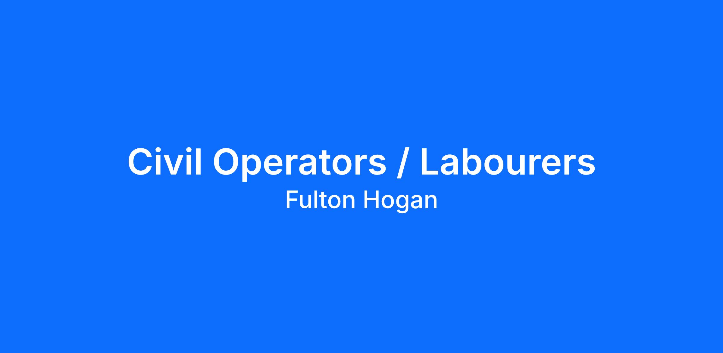We wish to complement our existing team with experienced Civil Labourers/ Operators for our Water infrastructure projects within our Fulton Hogan Utilities business. This is a fantastic opportunity for you to drive your career further and drive environmental and sustainability initiatives in a supportive environment. We offer excellent employee benefits and pathways for further growth.