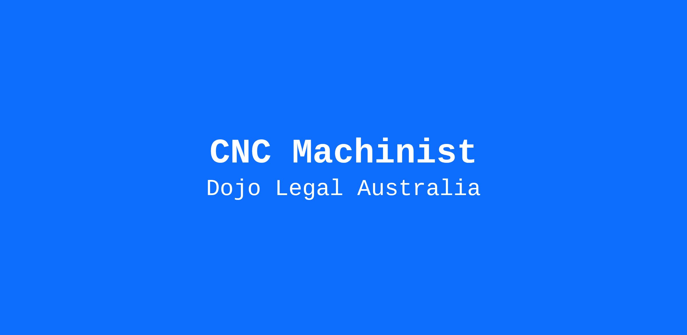 If you are motivated and ready to take on this exciting challenge, please send your resume and cover letter to jobpr@dojolegal.com.au with the subject line CNC Machinist | [YOUR NAME].