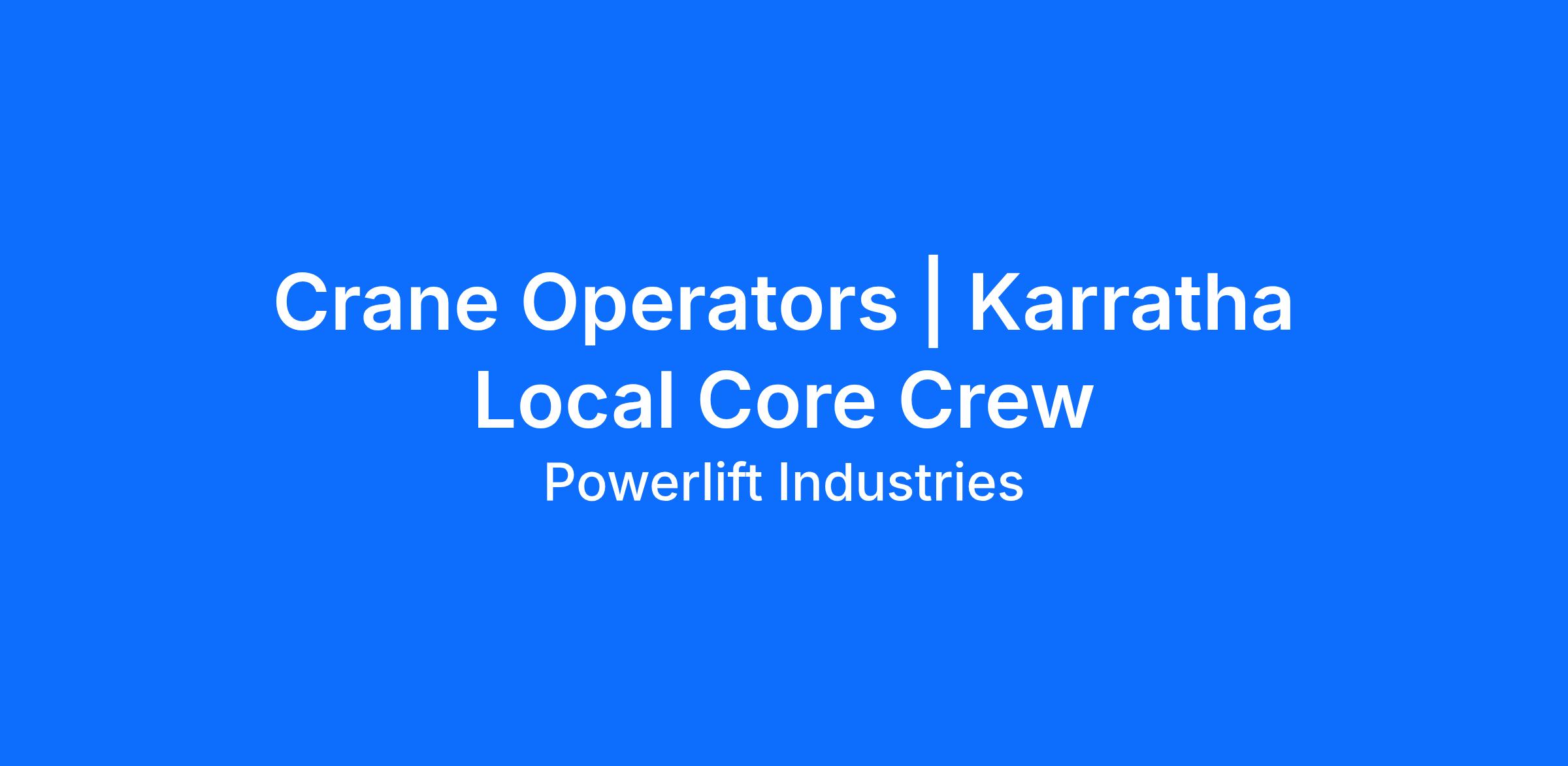 We require experienced Crane Operators that are local to Karratha to join our Core Crew team on a casual or permanent basis. This is a unique opportunity to be part of a great team in a rapidly expanding business.
