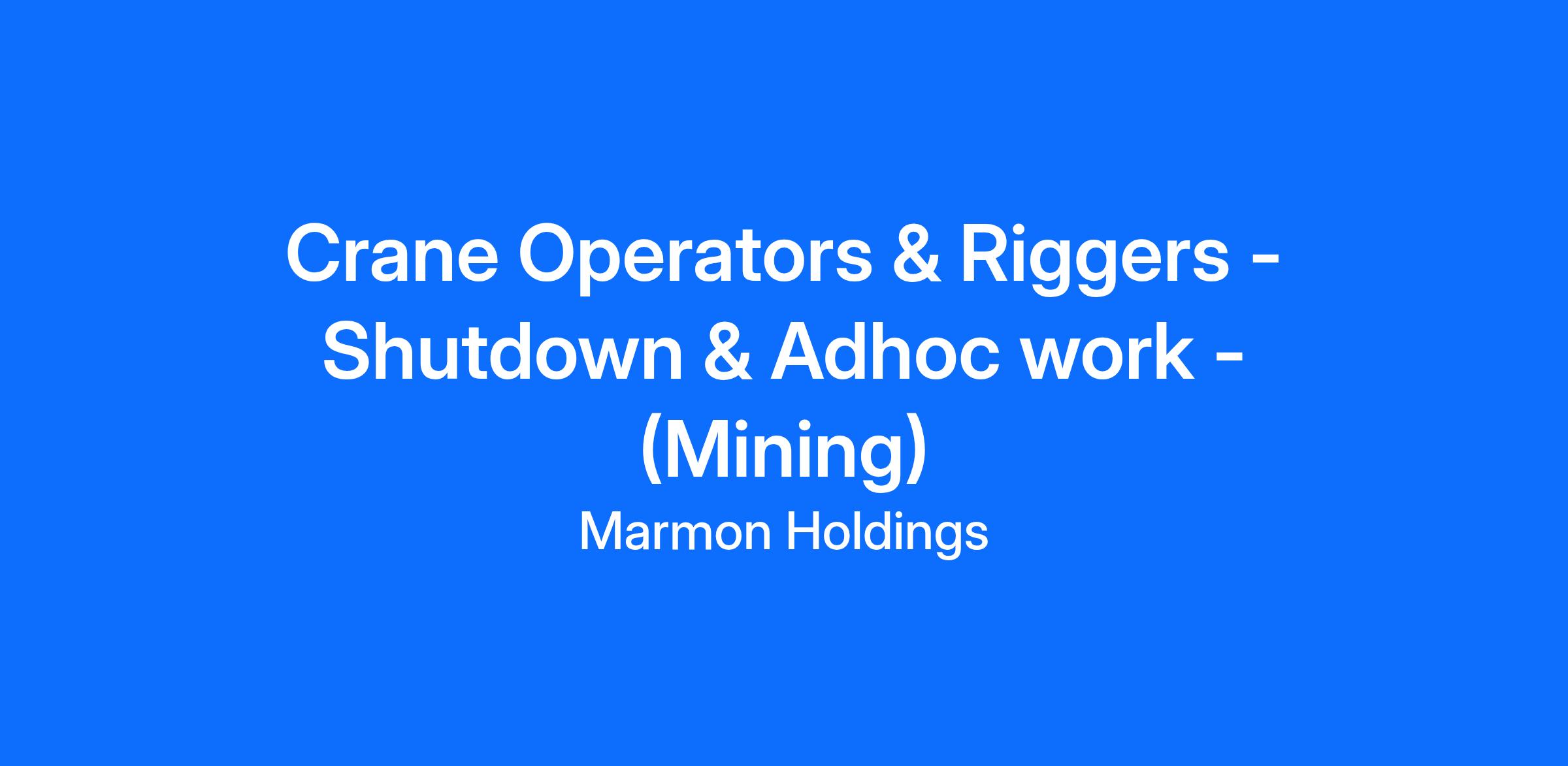 We are looking for a Crane Operator with experience in a FIFO, mining and or construction background, performing as a Crane Operator (250T All-Terrian and greater) in Shutdown and or Maintenance.