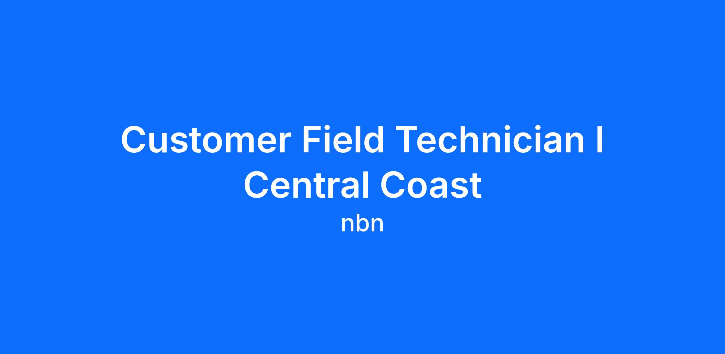 As a Customer Field Technician located in Central Coast, you will play a vital role working on Customer Service field tasks across potentially all nbn technologies. This is an autonomous role where you will be responsible for installation, repair and maintenance of nbn products and services. You’ll have the opportunity to work in multiple environments both internal and external but predominantly inside the customer’s premises.