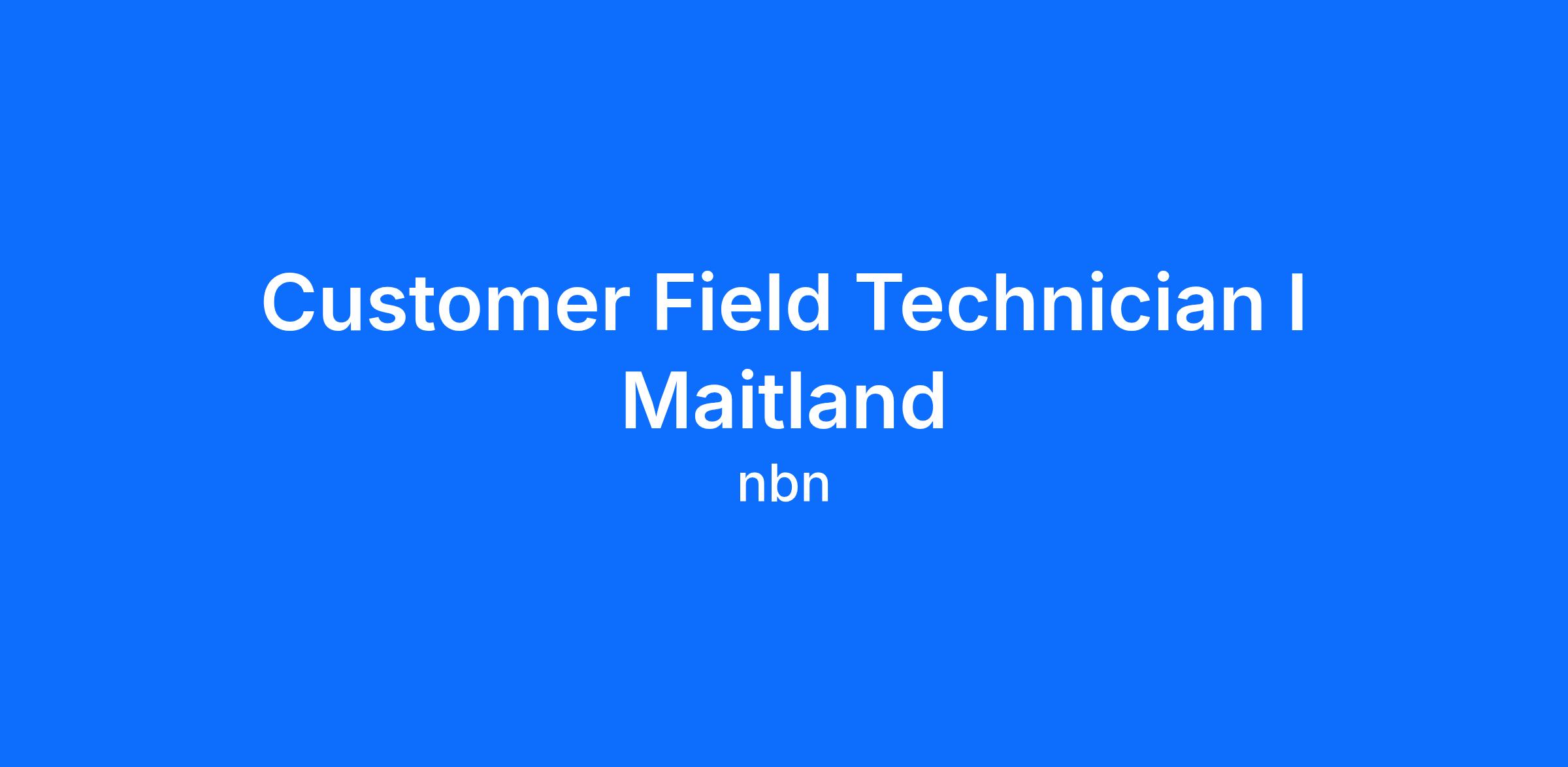 As a Customer Field Technician, located in Maitland, you will play a vital role working on Customer Service field tasks across potentially all nbn technologies. This is an autonomous role where you will be responsible for installation, repair and maintenance of nbn products and services. You’ll have the opportunity to work in multiple environments both internal and external but predominantly inside the customer’s premises.