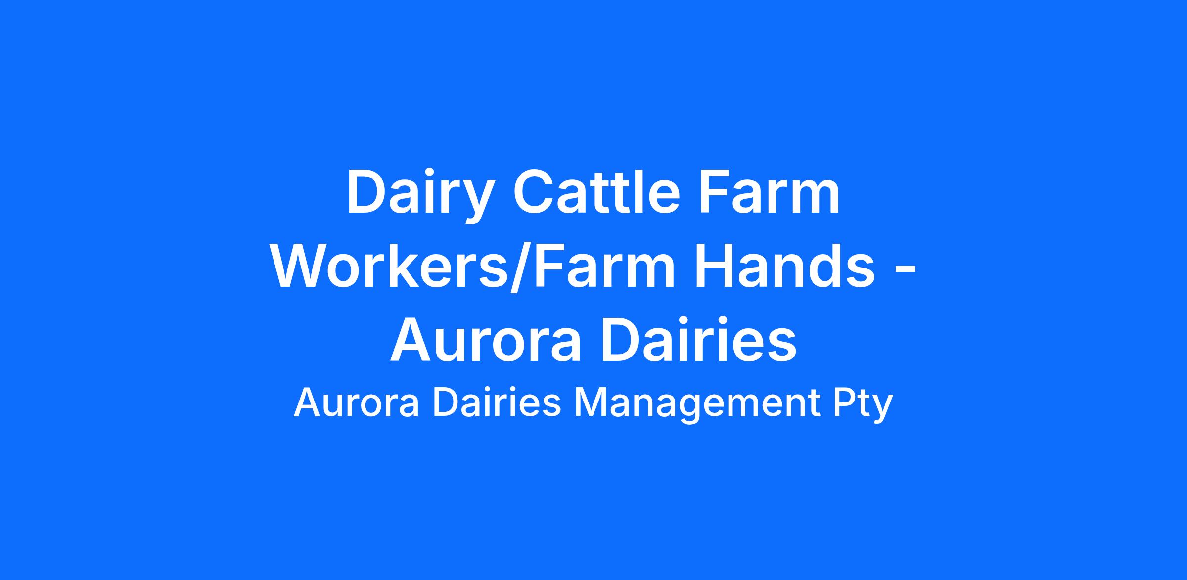 Aurora Dairies are currently seeking multiple Dairy Cattle Farmers - Farm Hands across South-East South Australia, Australia. The farms are located in the Mount Gambier Region.