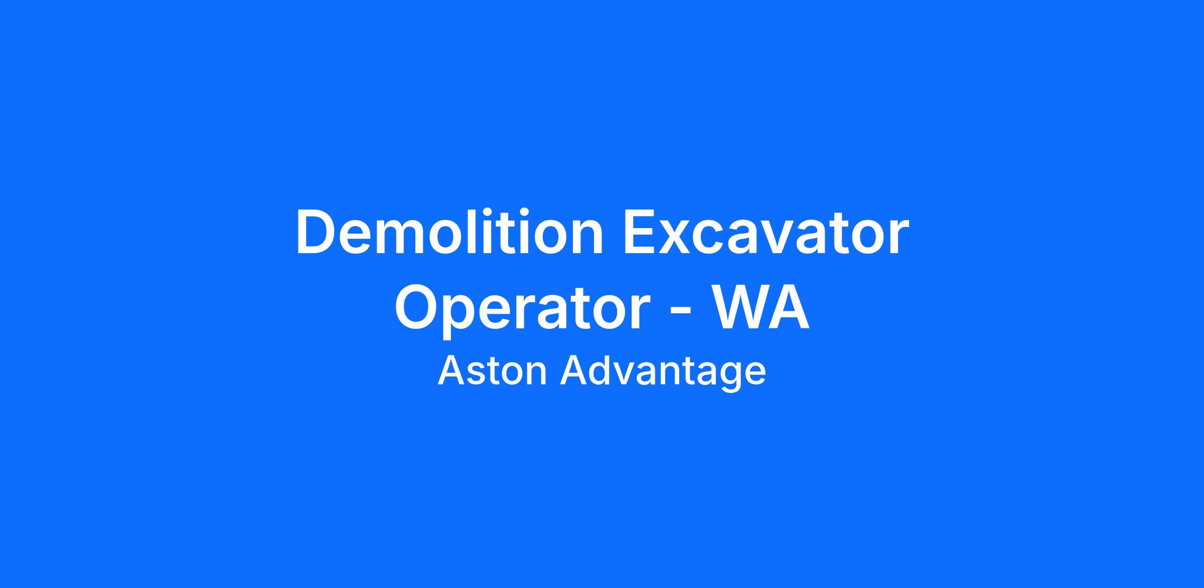 Demolition Excavator Operators | FIFO in WA | $55 - $64 per hour | 2:1 or 3:1 Roster