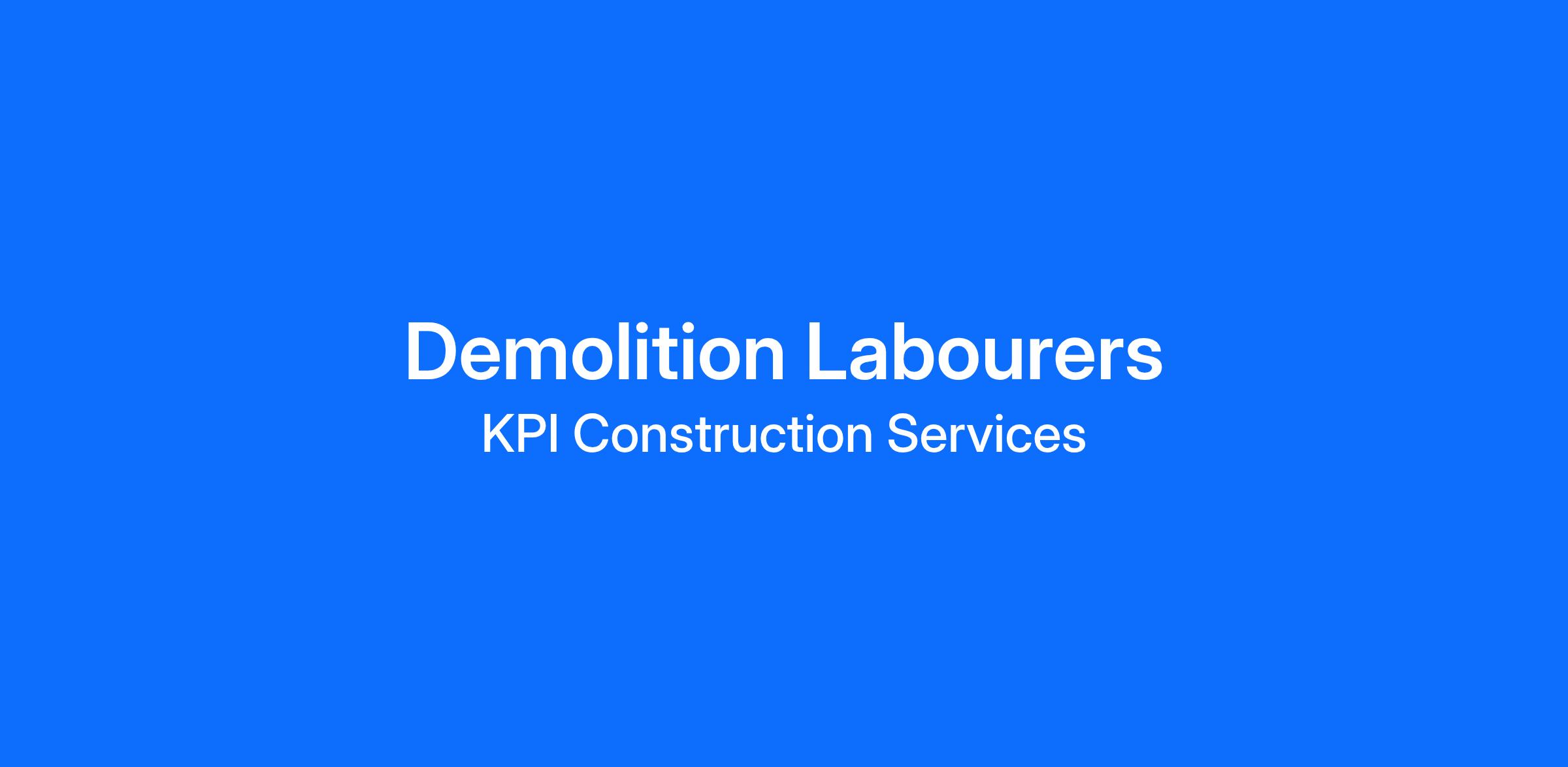 Experienced Demolition Labourers (High Risk Tickets) Casual Shifts | KPI Labour Hire