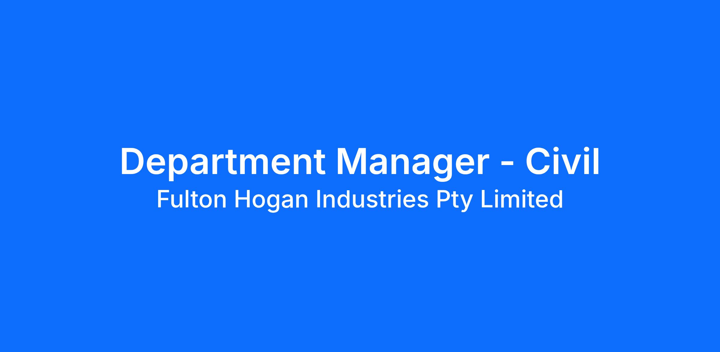 We are currently looking for a Department Manager – Civil to join our SEQ Infrastructure Services team. In this position you will lead the local team and assist Fulton Hogan drive effective, safe and profitable outcomes. This is an exciting role for a passionate candidate wishing to embark on new challenges, whilst working in a vertically integrated business where you will have support from existing teams to secure your success.