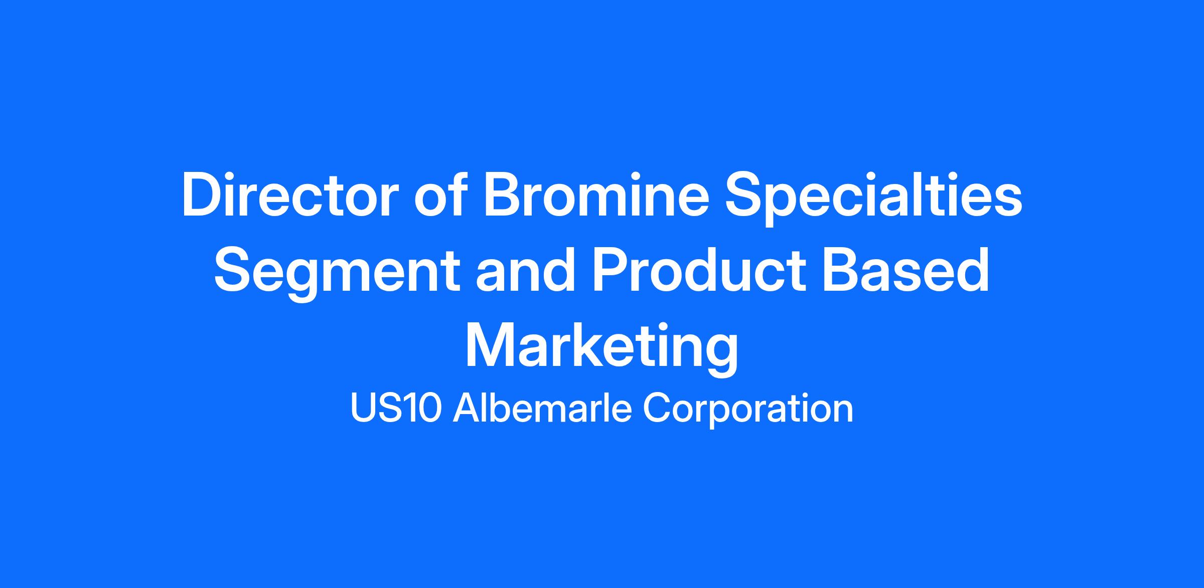 Albemarle is hiring for a Director of Bromine Specialties Segment and Product Based Marketing . This position is hybrid (3-days per week in office) and located in Charlotte, NC