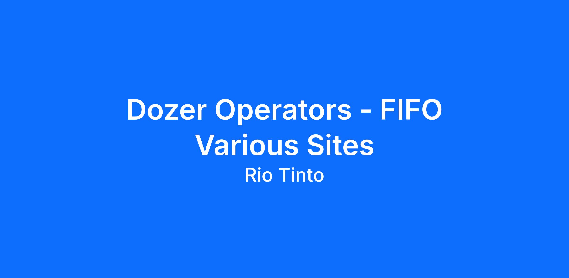 Experienced Dozer Operators – FIFO Various Sites