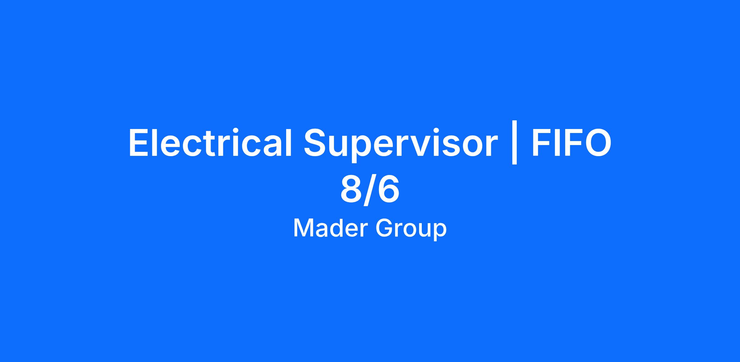 Due to continued growth, Mader are currently seeking Electrical Supervisors to join our Fixed Plant Maintenance team on a full-time basis.
