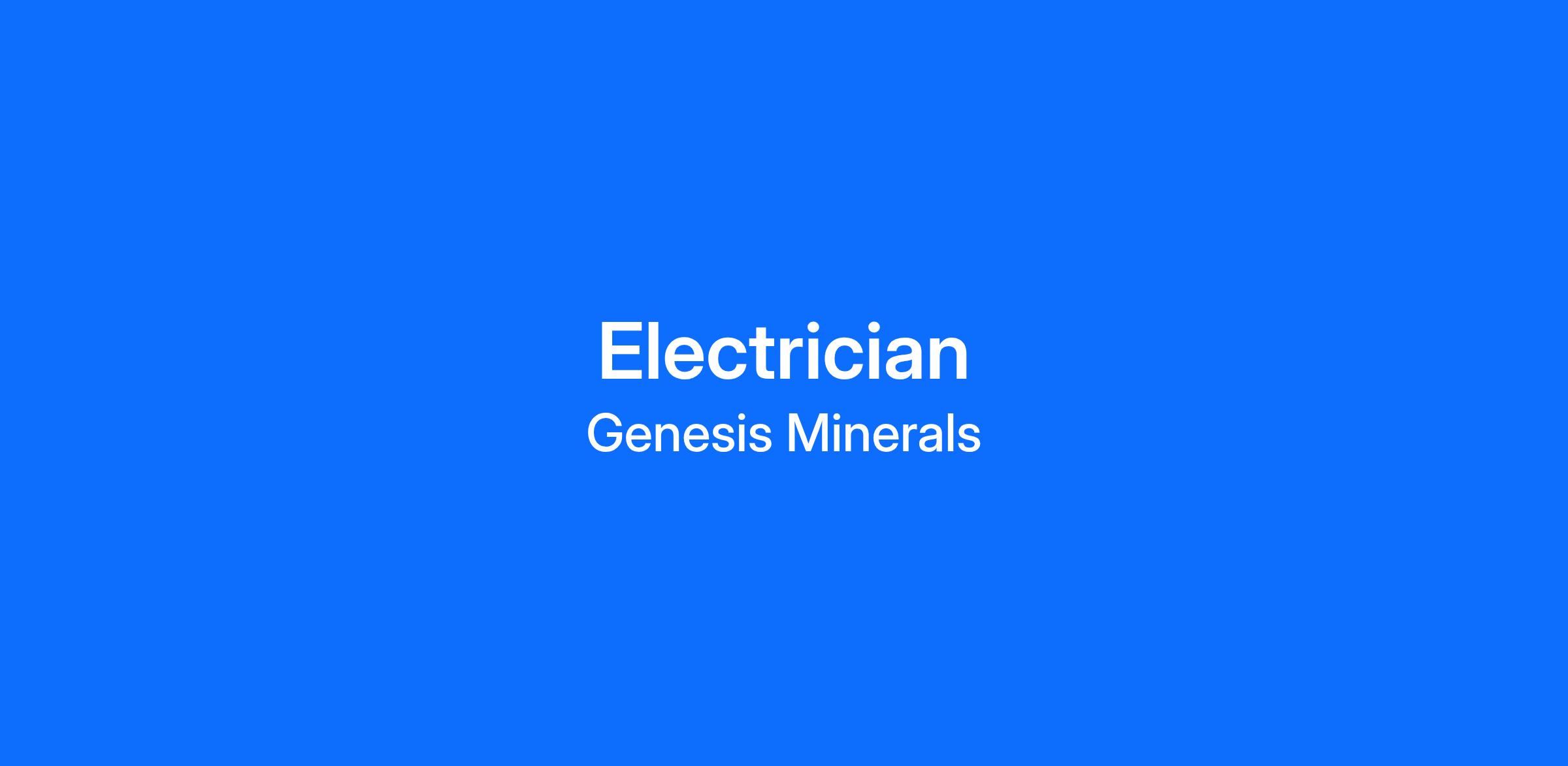 Genesis Minerals have a newly created position for an Electrician to join and to complement our current Surface Maintenance Team located at our Gwalia Mine Site, Leonora.