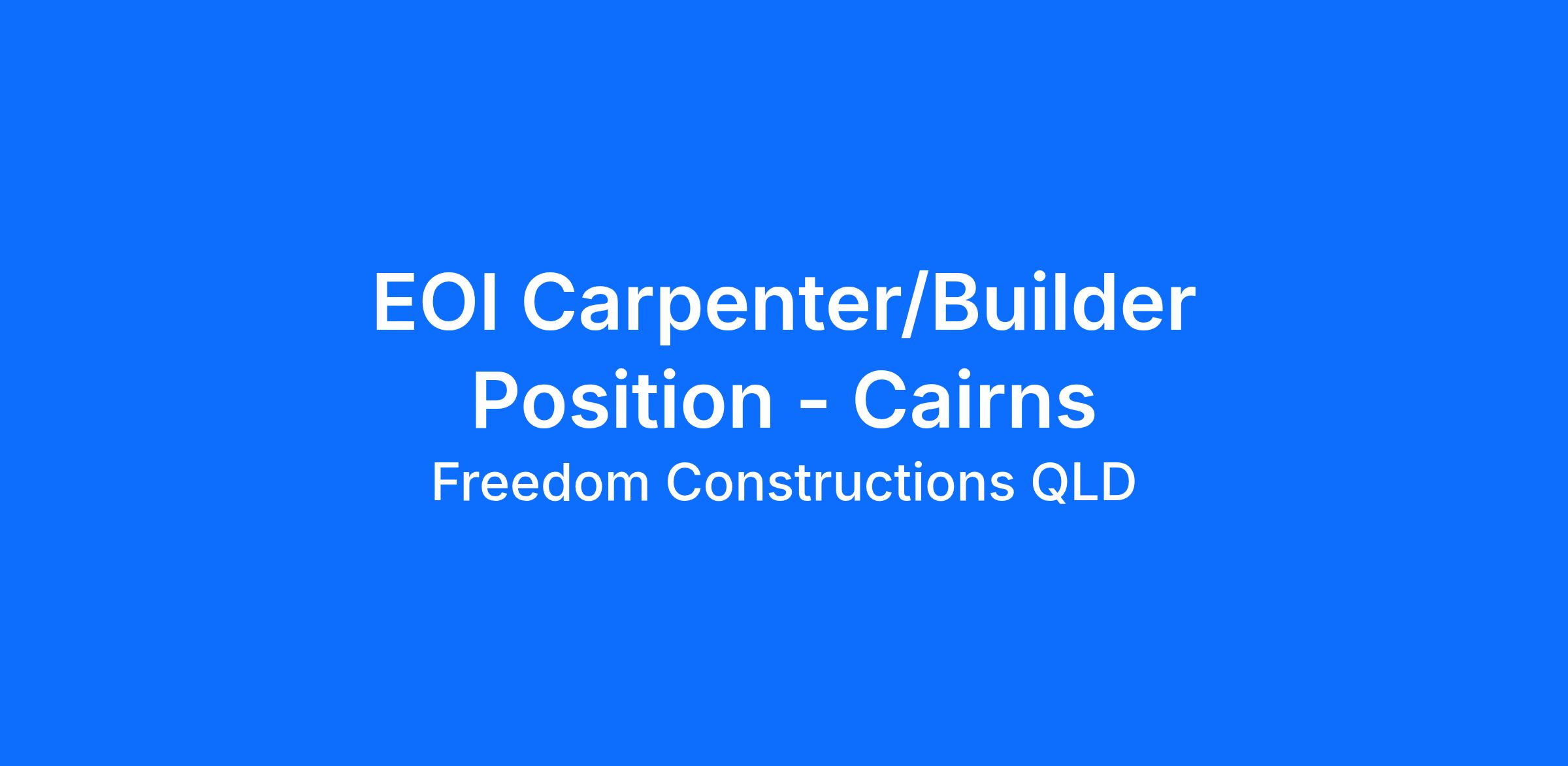 EOI Carpenter/Builder Position – Cairns