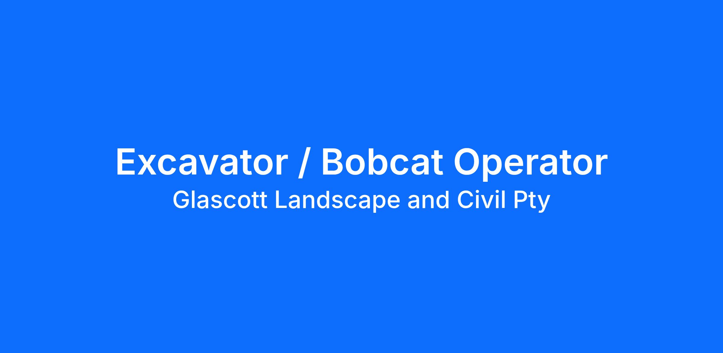 Glascott Landscape and Civil are looking for experienced Excavator / Bobcat Operators, to join our capable and friendly team. This is a full-time permanent opportunity is based in various Canberra sites.