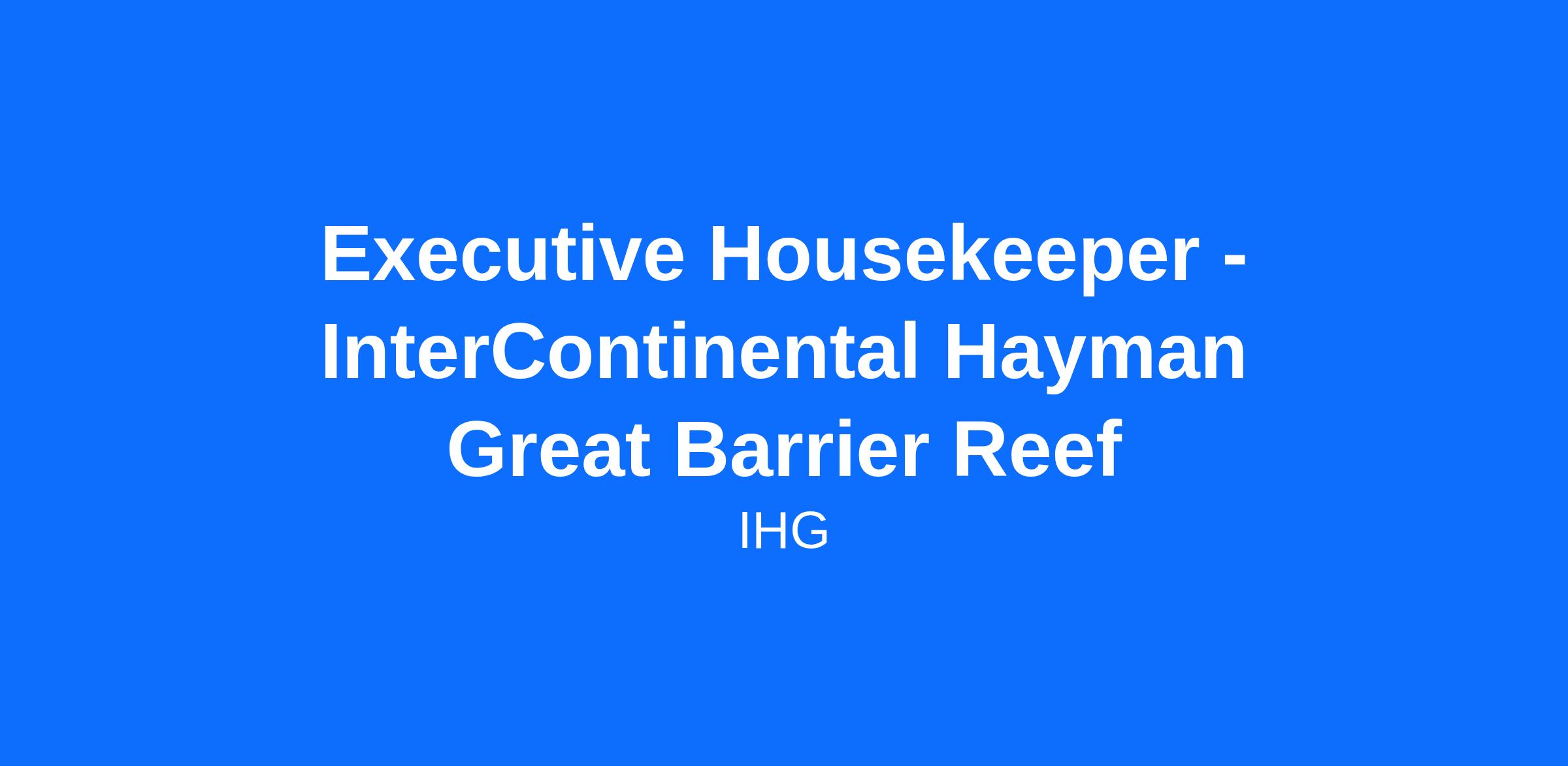 We are seeking an Executive Housekeeper. InterContinental Hayman Great Barrier Reef are looking for a dedicated and enigmatic leader to oversee our Housekeeping & Laundry operations, ensuring the highest standards of cleanliness and guest satisfaction. In this role, you will manage, coach, and develop a motivated team committed to delivering exceptional results.