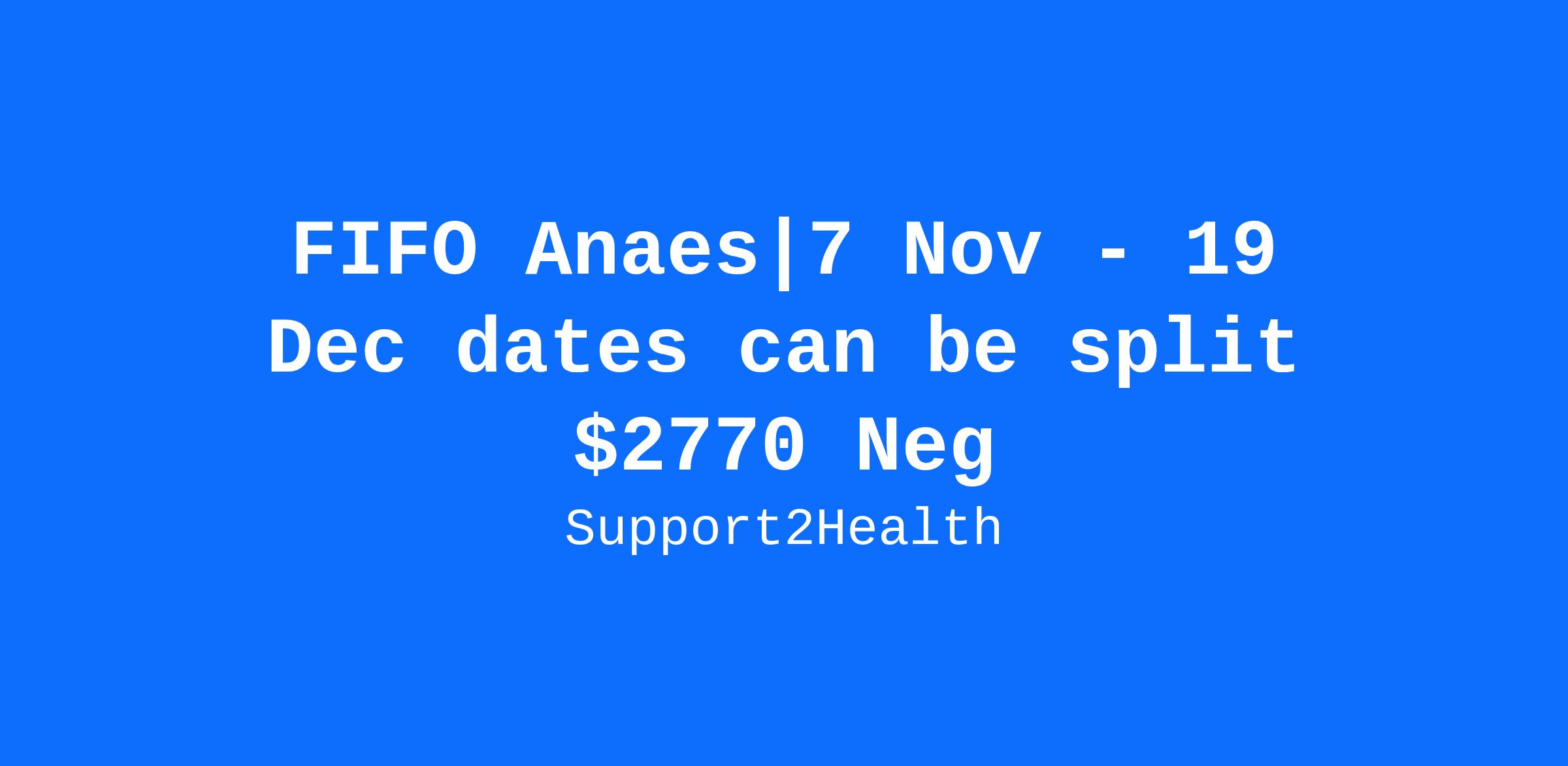 FIFO Anaes|7 Nov - 19 Dec dates can be split $2770 Neg