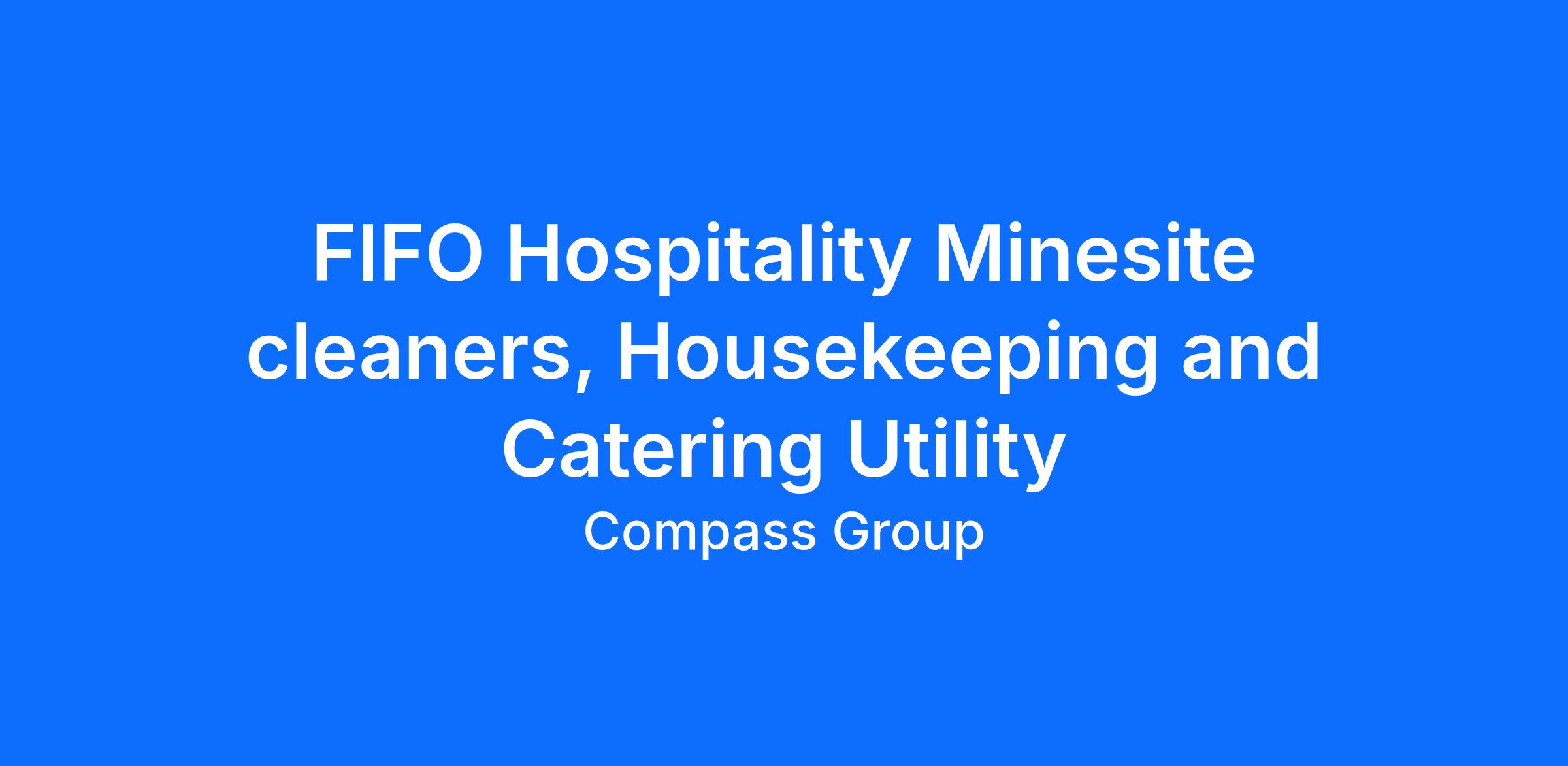 FIFO Hospitality Minesite cleaners, housekeeping and catering utility