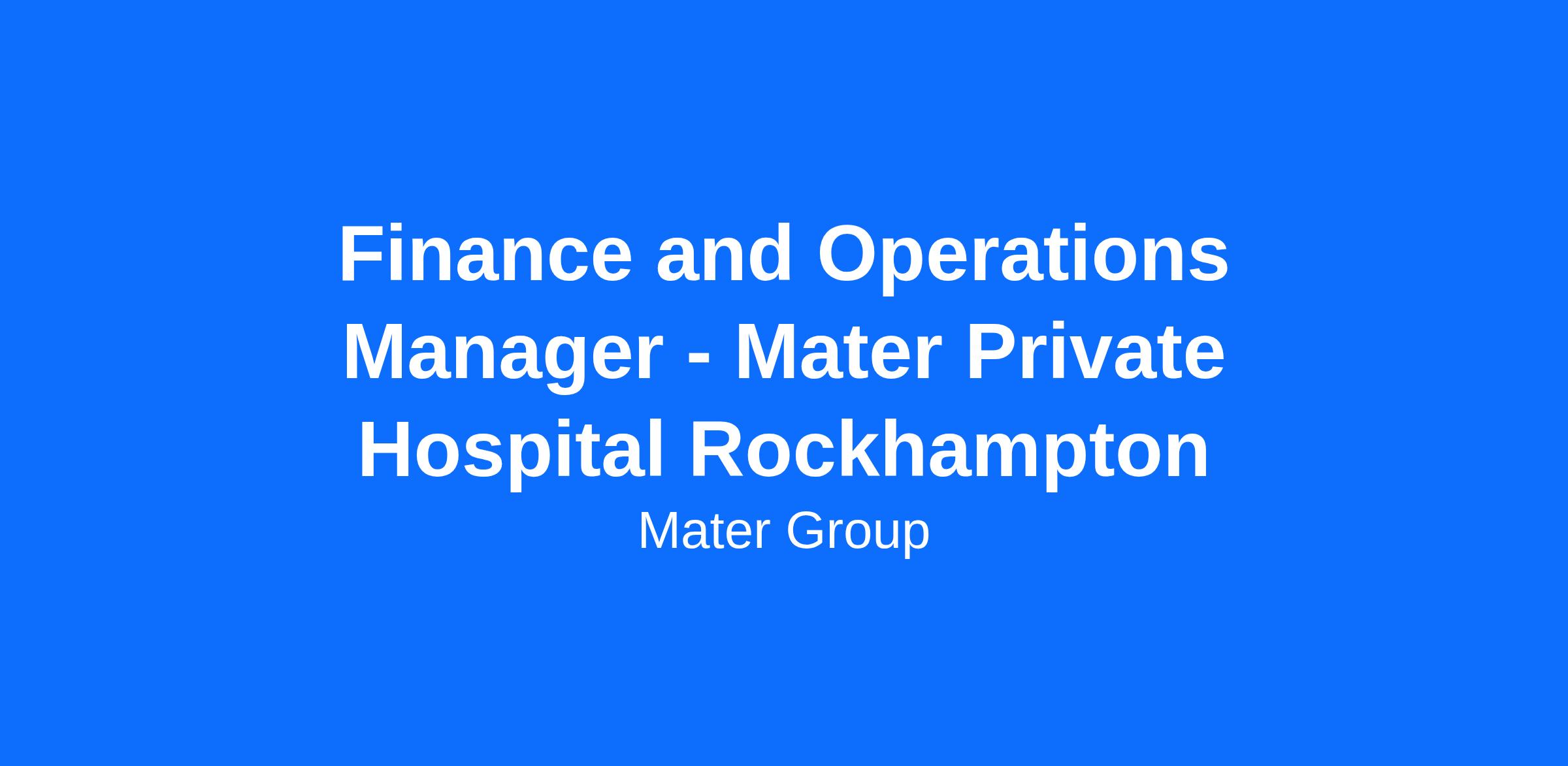 Mater Private Hospital Rockhampton is seeking a dynamic Finance and Operations Manager to join our growing team in this exciting permanent, full-time opportunity.