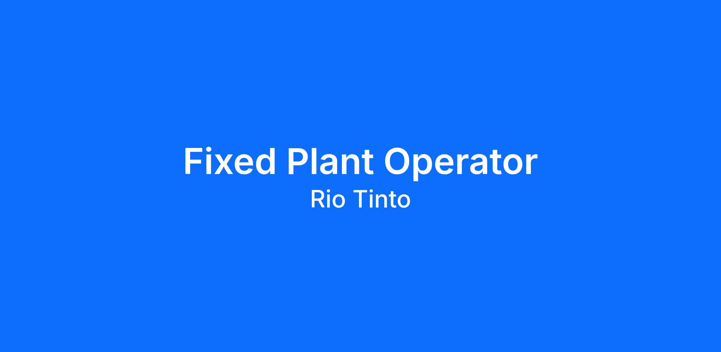 This is a great opportunity for experienced, driven and safety focused Fixed Plant Operators to join Rio on a permanent full-time basis with a family friendly 8:6 roster.