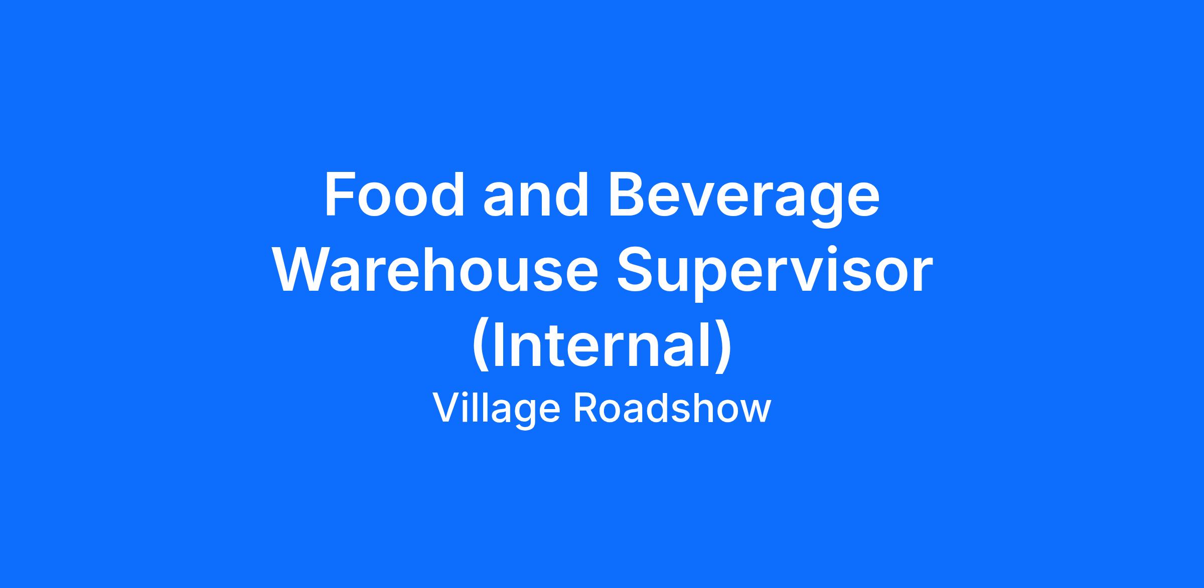 Food and Beverage Warehouse Supervisor (Internal)