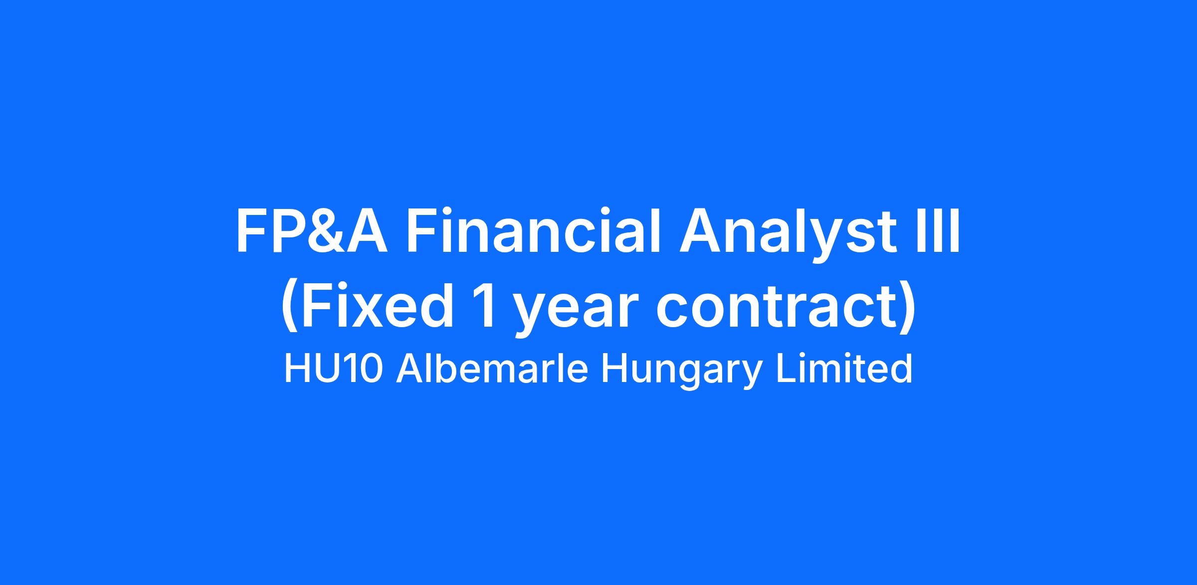 Albemarle is hiring for a FP&A Financial Analyst (Fixed 1 year contract). This position is hybrid and located in Budapest, Hungary.
