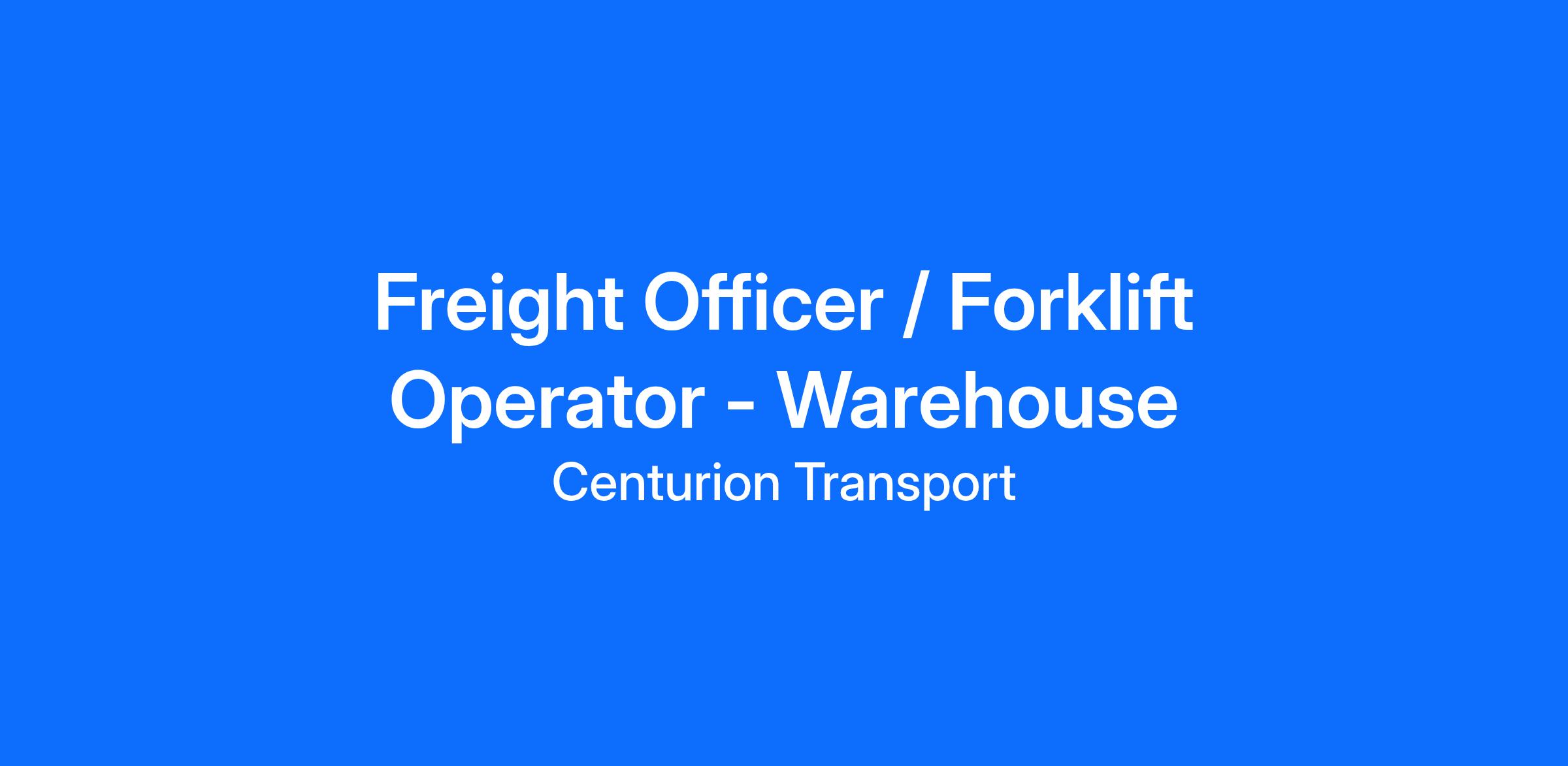 Title: Drive Your Career with Centurion: Seeking Freight Officer