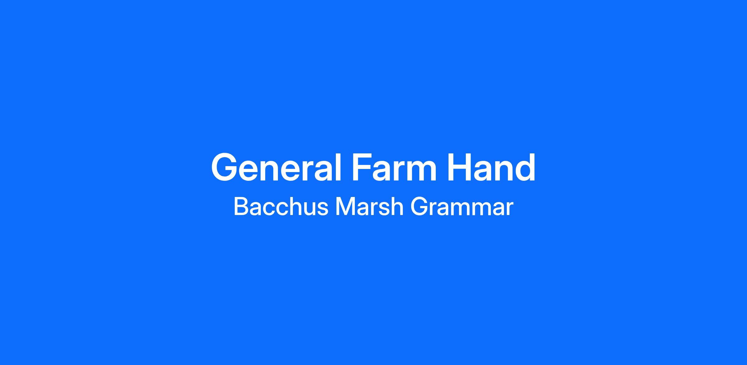 The role of the General Farm Hand is to support the ongoing maintenance and development of the Staughton Vale Campus and ensures the care and wellbeing of all animals and stock. The role requires upholding the School’s vision—particularly in student welfare, public relations, and customer service—when engaging with students, staff, external organisations, and community groups.