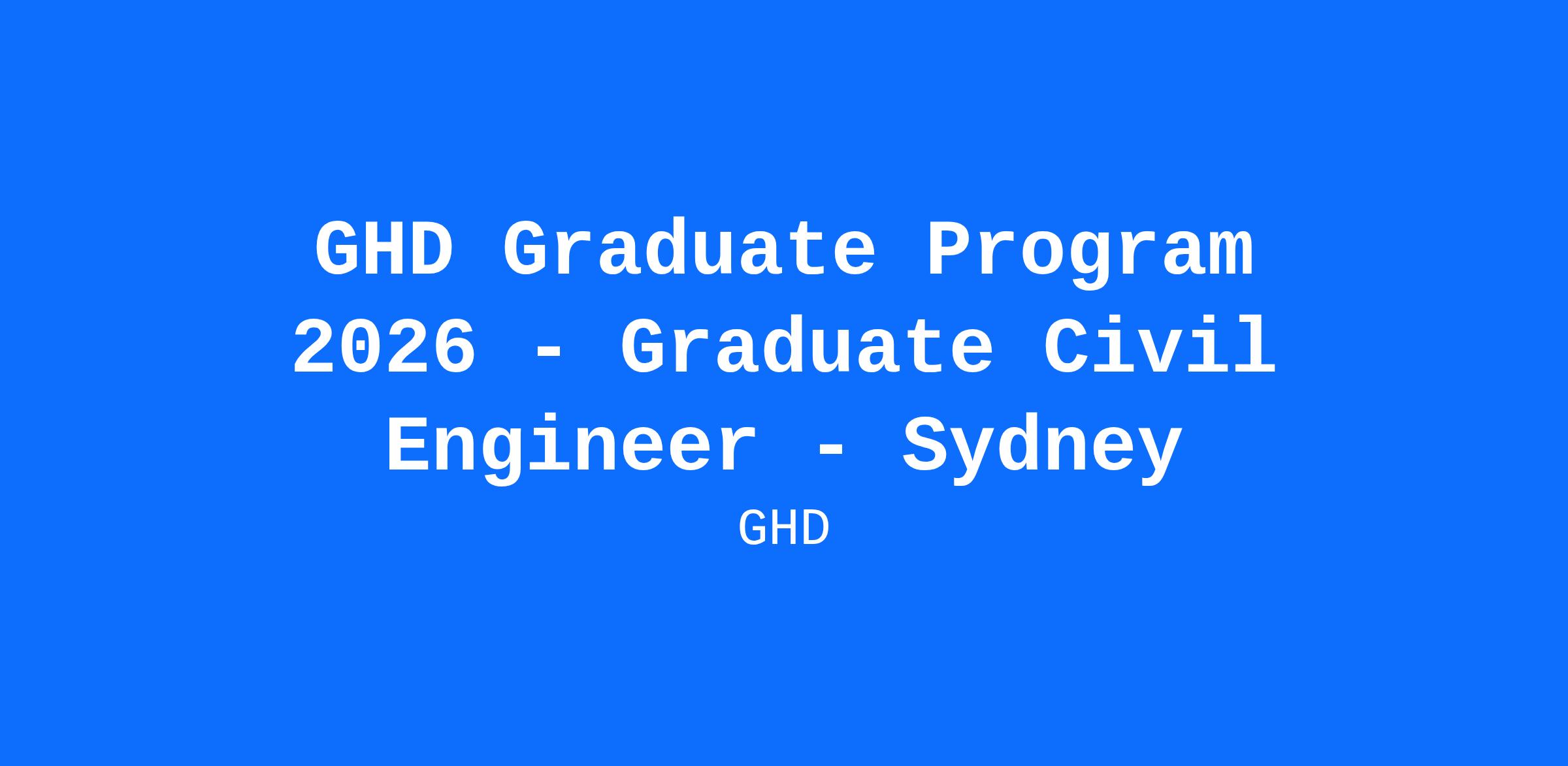 GHD Graduate Program 2026 – Civil and Roads Graduate – Sydney/Parramatta