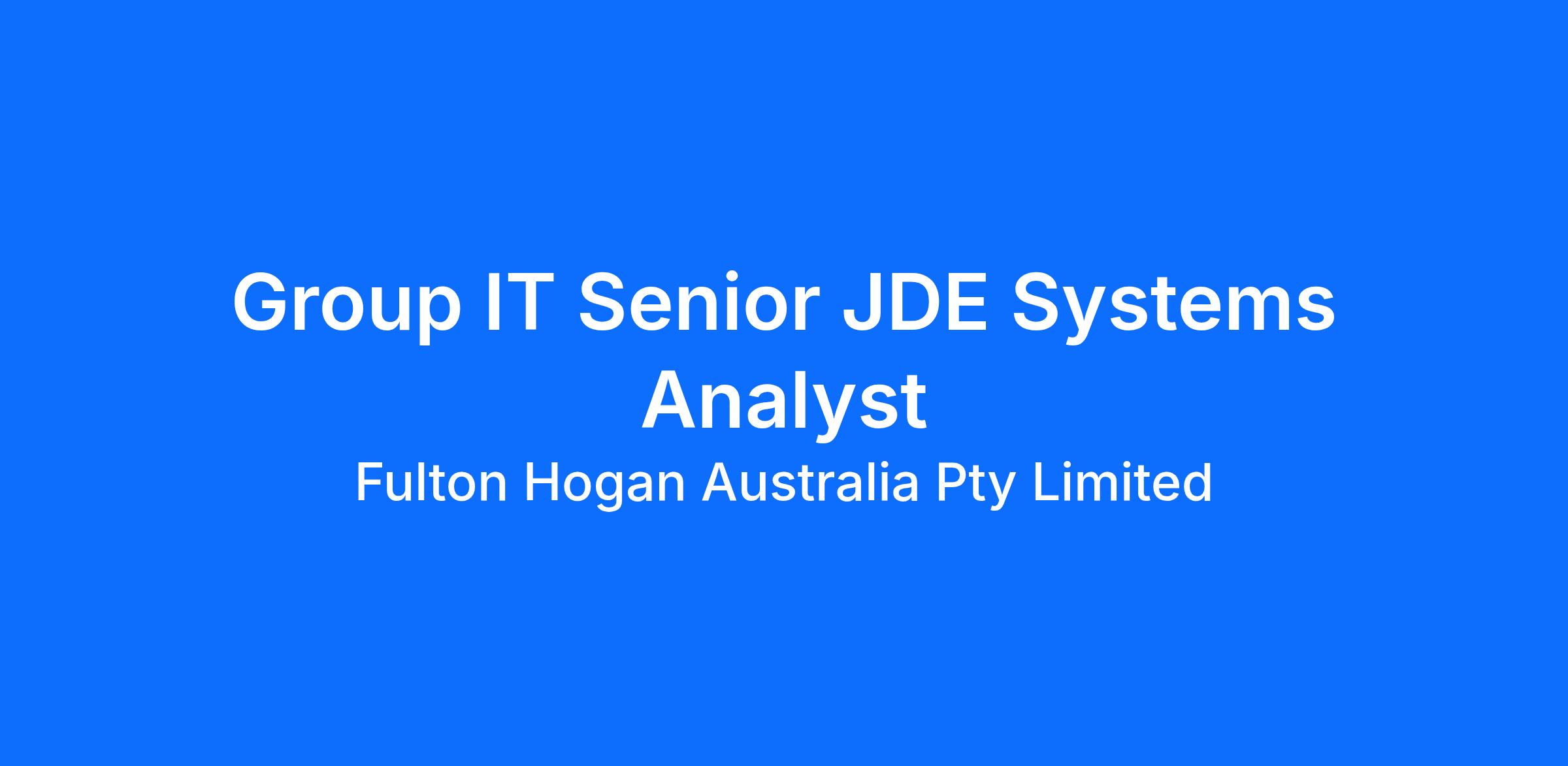 We are looking to recruit the role of a Group Senior JDE Systems Analyst on a 24-month max term contract to be based in Melbourne, Sydney, Brisbane or Adelaide. Reporting to the Group JDE Support Manager, you’ll play a key role in our JDE applications team, supporting our people to use the JDE ERP system safely, efficiently and in line with finance and ERP best practice.
