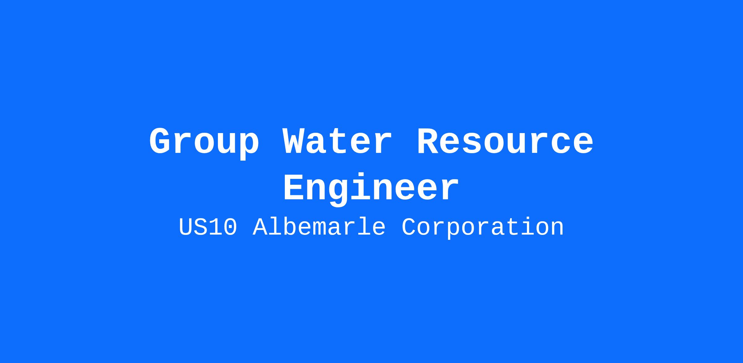 Albemarle is hiring for a Water Resource Engineer. This position is in-office and located in King's Mountain Tech Center.