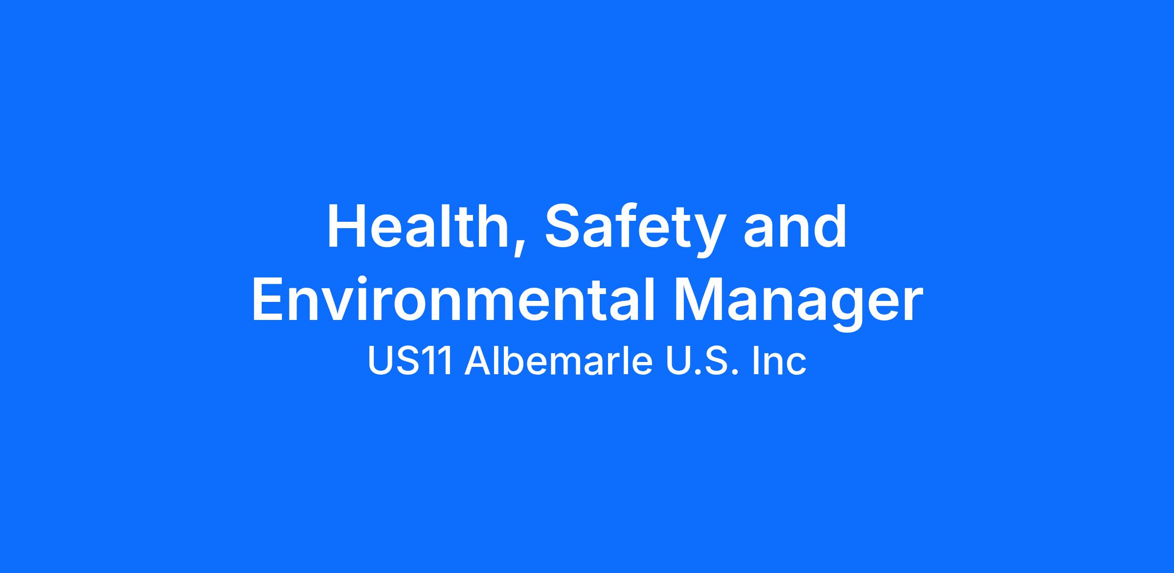 Albemarle is hiring for a Health, Safety and Environmental Manager. This position is in-office and located in Silver Peak, Nevada.