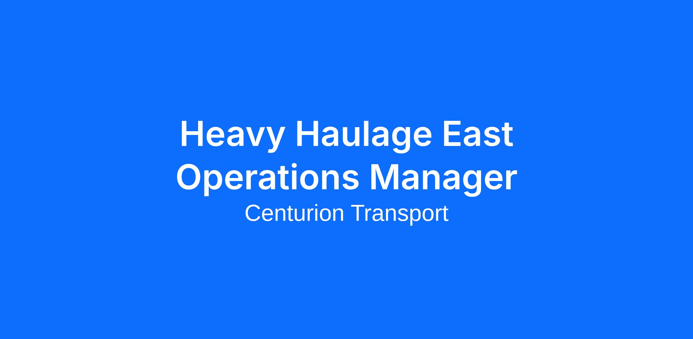 Title: Drive Your Career with Centurion: Seeking Heavy Haulage East Operations Manager