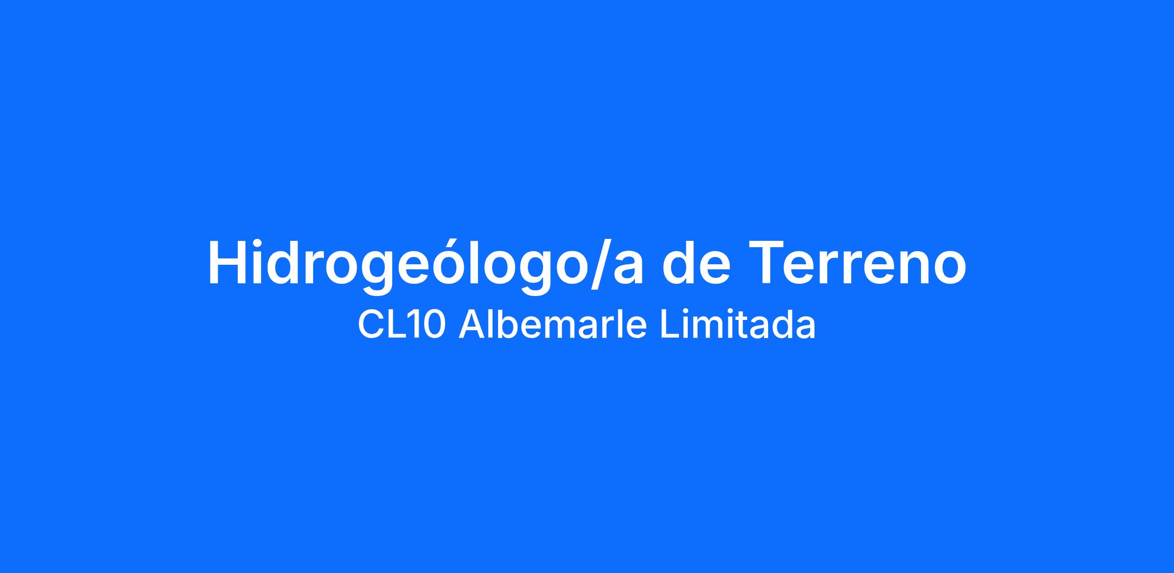 Albemarle está contratando para un Hidrogeólogo/a de terreno en [Salar de Atacama, bajo sistema de turno 7x7.